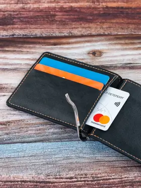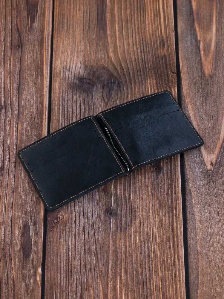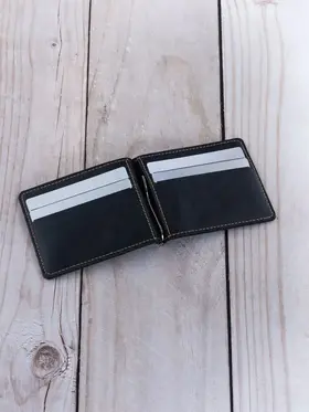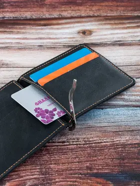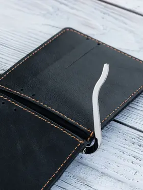 Зажим для купюр из натуральной кожи Зажим для денег выполнен из мягкой натуральной кожи с эффектом "дымка" и украшен тиснением с логотипом бренда. Внутри установлен металлический зажим для купюр который откидывается в 2 положения (до середины и полностью раскрывается). Внутри прижима для купюр 4 кожаных кармана для кредитных или скидочных карт и 2 скрытых кармана в которые помещается по 1-3 пластиковой карте. Упакован зажим для банкнот в закрывающуюся коробку из плотного картона с логотипом. Для дополнительной сохранности внешнего вида коробка убирается в полиэтиленовый, прозрачный пакет с клеевым слоем. Размер 11х8,5см. Производство: Россия, Санкт-Петербург.