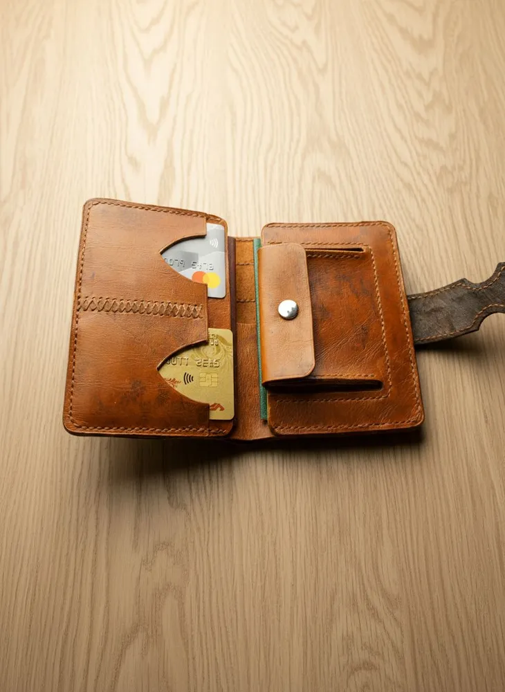 Мужской кошелек Bifold из натуральной кожи, ручной работы ✔️ Материал: натуральная кожа высокого качества ✔️ Цвет: благородный коричневый оттенок ✔️ Особенности: — Два удобных отделения для банковских карт — Отделение для бумажных денег с возможностью комфортного размещения крупных купюр — Практичный карман для монет с надежным замком — Специальный отсек для документов (например, паспорт) ✔️ Преимущества: ручная работа, аккуратные швы, долговечность и стильный внешний вид Идеален для повседневного использования и станет отличным подарком! Каждый кошелек ВРУЧНУЮ заботливо обработан натуральным защитным покрытием.Воск придает вашему кошельку богатый внешний вид. Прочные швы и надежные нити. Брутальный и компактный кошелек станет вашим незаменимым спутником, подчеркнет ваш стиль и уверенность в себе! Изделие выполняется вручную от раскроя до пошива. Торцы обрабатываются специальным составом для противодействия попаданию в них пыли и влаги. Прошивается шорно-седельным швом, который отличается своей надежностью и долговечностью. Натуральная кожа с течением времени приобретает уникальный благородный оттенок, делая ваш портмоне по-настоящему индивидуальным аксессуаром. Идеальный баланс вместительности и компактности позволит всегда иметь при себе все необходимое, сохраняя безупречный стиль. Отличная покупка для повседневного использования! Оформляйте заказ прямо сейчас и наслаждайтесь качеством исполнения каждой детали.