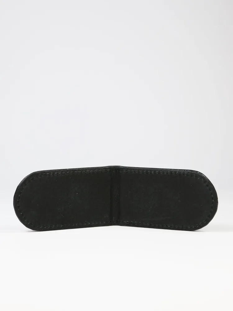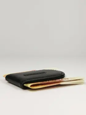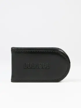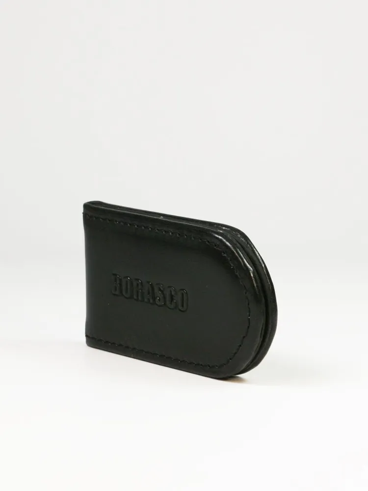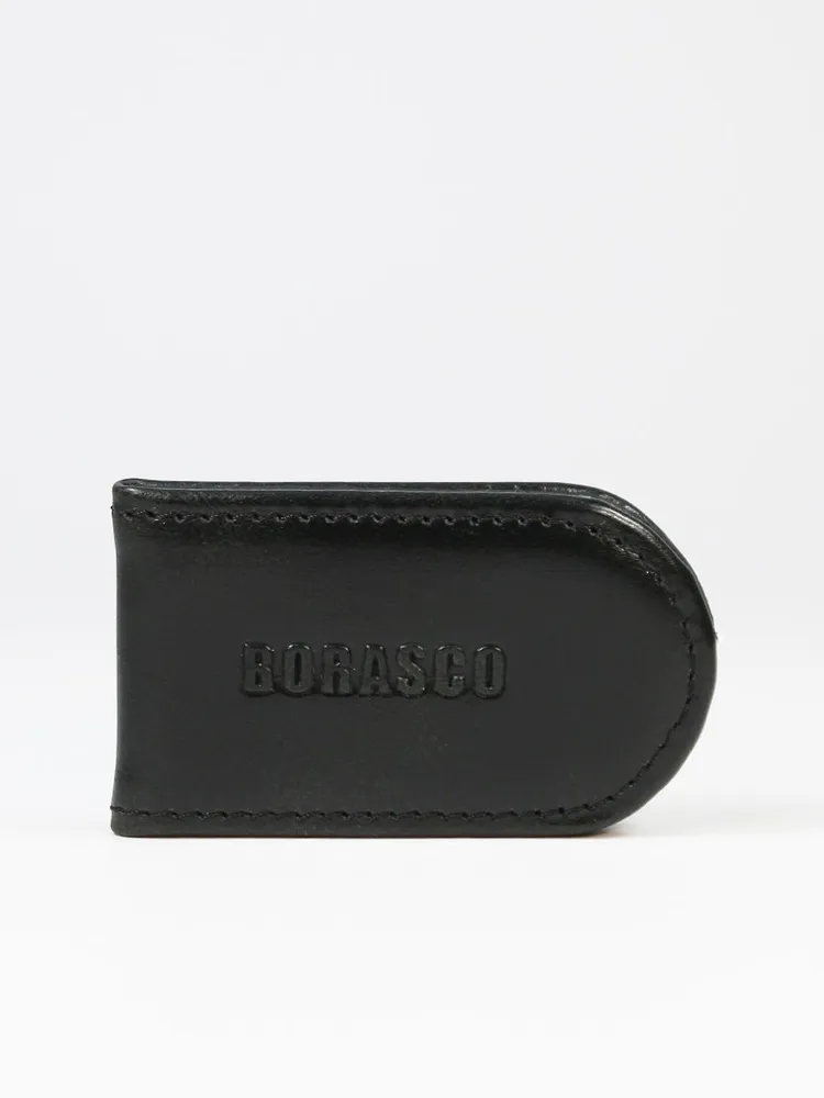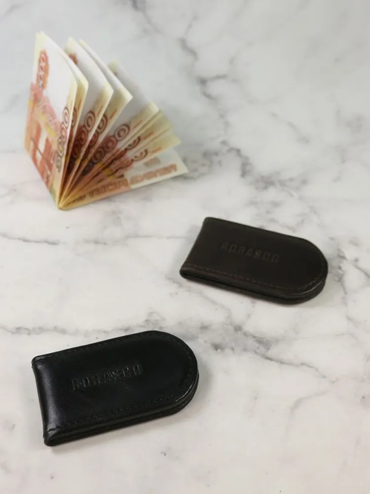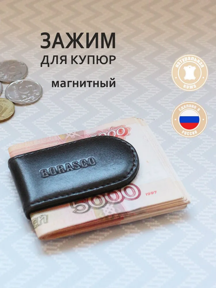 BR-ZM09-K101 Зажим-прищепка Квест черн. Зажим для денег из Коллекции Квест K101, тм Borasco Зажим-прищепка для купюр. Выполнен из натуральной гладкой кожи Druid черного цвета. На лицевой стороне 3D тиснение BORASCO. Внутри находятся магниты для надежной фиксации купюр зажимом. Компактный размер позволяет носить зажим с купюрами в кармане. Размер изделия 70мм*40мм. Зажим для купюр из натуральной кожи очень тонкий и компактный, но при этом способен удерживать до 10 купюр в сложенном виде. Не нужно прикладывать никаких усилий, чтобы достать деньги. А если в кармане есть монеты, то купюродержатель и их соберёт на себя. Сила магнитов рассчитана таким образом, чтобы зажим легко открывался, а также чтобы он не мог травмировать при его случайном схлопывании. Зажим для денег кожаный мужской - это идеальный подарок по любому поводу.