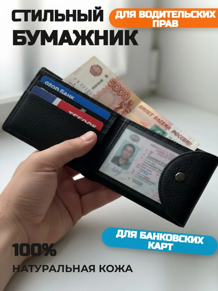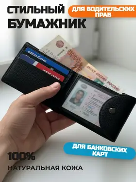 Бумажник для водителя Представляем вам стильный и функциональный бумажник-кошелек для водительских прав и хранения банковских карт из 100% натуральной кожи. В категории "Галантерея и аксессуары", этот аксессуар безусловно станет незаменимым помощником в вашей повседневной жизни. Продуманный и функциональный Изготовленный из высококачественной натуральной кожи, он сочетает в себе элегантность и долговечность. Благодаря компактным размерам, он легко помещается в карман, что очень удобно для повседневного использования. Внутреннее пространство бумажника спроектировано так, чтобы обеспечить максимальную функциональность. Он оснащен отделениями для бумажных банкнот, специальных слотов для банковских карт и держателем для водительских прав. Кроме того, в нем можно удобно разместить визитки и другие мелкие, но необходимые вещи. Модель унисекс Этот кошелек из натуральной кожи удовлетворит все ваши потребности в организации и хранении документов. Его универсальный дизайн подходит как для мужчин, так и для женщин, что делает его отличным подарком для любого случая. Кроме того, бумажник имеет высокое качество изготовления, что гарантирует долговечность и сохранение презентабельного вида на протяжении длительного времени. Компактный и вместительный Данный аксессуар отличается не только стильным внешним видом, но и высокой вместительностью при компактных размерах. Вам не придется выбирать между практичностью и элегантностью – этот бумажник сочетает в себе оба эти качества. Если вы ищете компактный, но вместительный кошелек для повседневного использования, то этот держатель банковских карт и бумажных банкнот – идеальный выбор.
