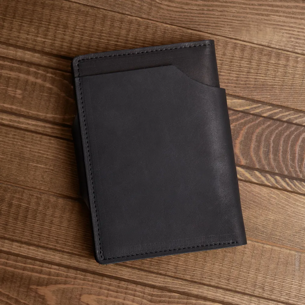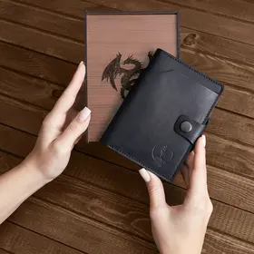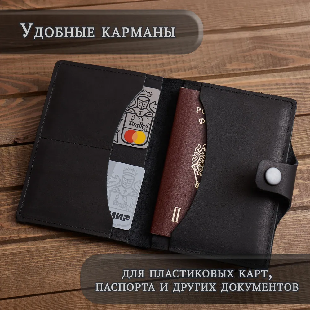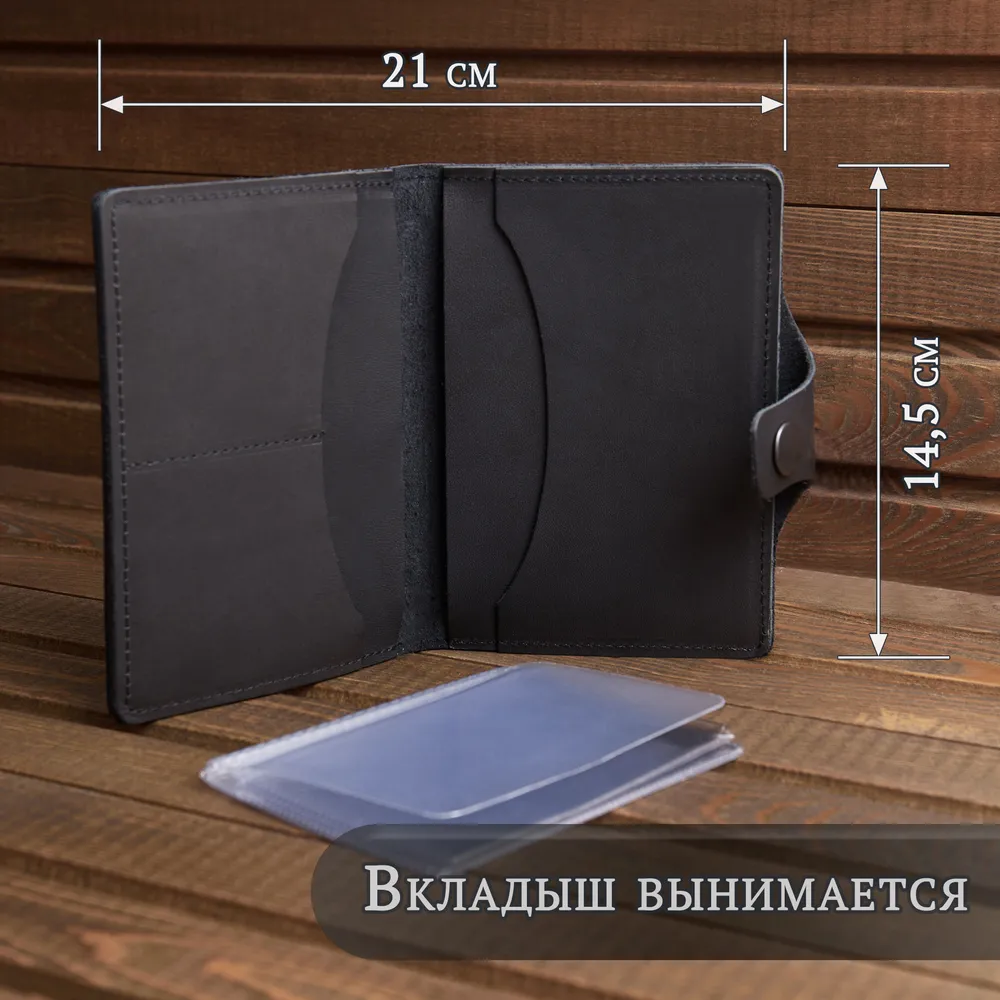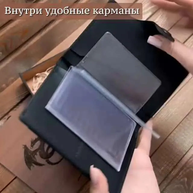 Черный кошелек 3 в 1! - Бумажник для автодокументов - Портмоне для купюр - Держатель для карт Только купюры, карты и документы - все самое важное ВСЕГДА С СОБОЙ 100% ручная работа! Модели мы придумываем сами. Крафтовые изделия – всегда уникальны и неповторимы. Это то, что даст вам ощущение вашего лучшего выбора. Прочные швы и надежные металлические кнопки. Бережное тиснение с логотипом. Подарочная упаковка для вас Когда каждая деталь имеет значение. Подарочная деревянная коробка в комплекте. Мы бережем ваше время. Бумажник в подарочной коробке настолько продуман, что вам остается только подарить Только натуральная кожа - на меньшее не соглашайтесь! Натуральная кожа KPC Crust - это всегда особенные ощущения в руках. Никакой ткани! Только натуральная кожа внутри. Каждый кошелек ВРУЧНУЮ заботливо обработан натуральным защитным покрытием. Воск придает вашему портмоне богатый внешний вид. Вместительный, но компактный!Емкий карман для денег Заряжен на успех! Чаще держите в руках достойный бумажник. Ваш вместительный кошелек для денег - для тех, кто любит брать все самое важное с собой. Портмоне из натуральной кожи размером всего 10х14. И пусть в нем всегда будет по-настоящему много денег! Бумажник "Земля сосен" сделан в России! Мы - небольшая кожевенная мастерская. И тем важнее и ценнее ваше доверие. Мы, как производители, всегда на связи. Гарантия на каждое изделие 6 месяцев. Бережно и с любовью делаем кошельки для вас. Верим, что труд мастерской принесет вам радость
