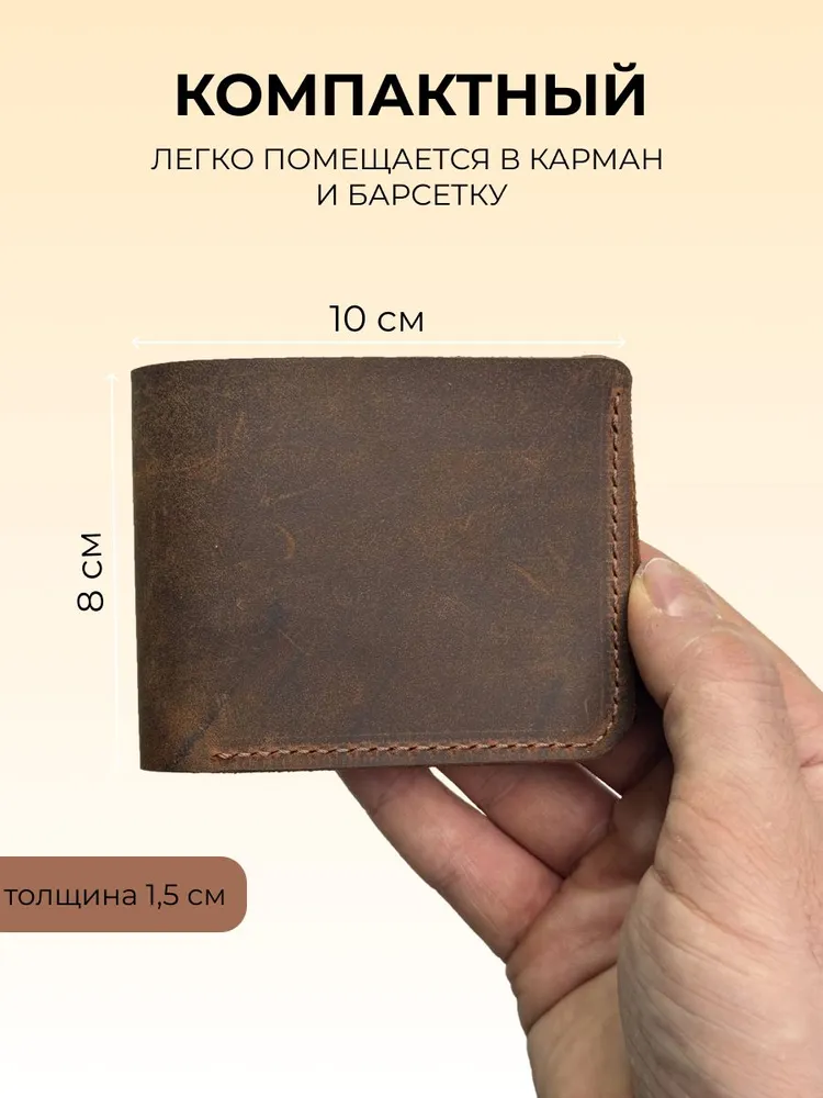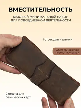 Мужской кошелек из натуральной кожи Элегантное решение для тех, кто ценит сочетание надежности и стиля. Изготовлен из плотной натуральной кожи высокого качества, которая обеспечивает долгий срок службы даже при активном использовании. Компактный формат «бифолд» идеально помещается в карман джинсов или портфеля, сохраняя порядок благодаря нескольким отдельным секциям для документов, карт и денег. Классическая расцветка гармонично дополнит любой образ – будь то деловой костюм или casual-стиль. Прочный шов и минималистичный дизайн гарантируют комфорт использования каждый день.