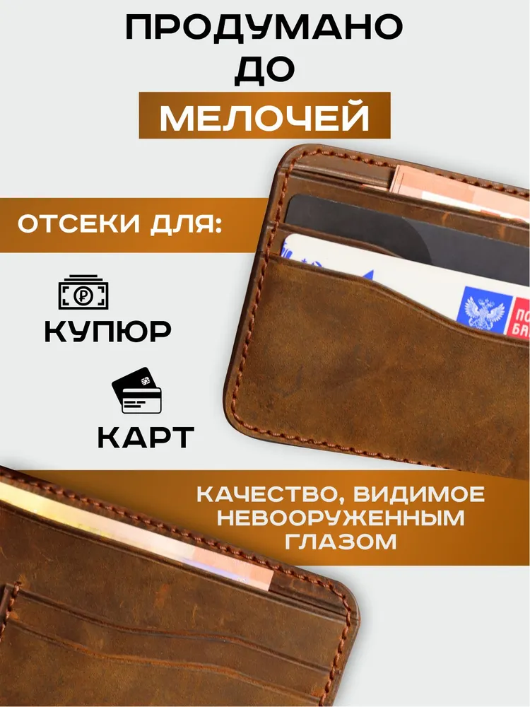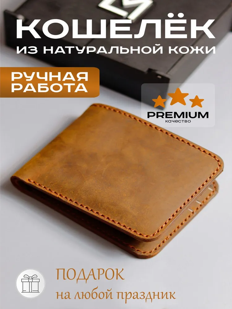 ❗️Внимание ❗️ к сожалению в деревянных коробках больше не поставляем, так как цех прекратил свою работу, приносим свои извинения. Кошелек бифолд из натуральной кожи коньячного цвета создан вручную опытным мастером и отличается безупречным качеством. Каждое изделие выполняется с вниманием к деталям: аккуратные швы, ровная форма и благородная текстура кожи делают аксессуар стильным и долговечным. Внутри предусмотрено шесть отсеков для карт и отдельное отделение для купюр. Компактный формат позволяет удобно носить кошелек в кармане, сохраняя при этом вместительность и функциональность. Натуральная кожа со временем приобретает красивый индивидуальный оттенок, становясь ещё более выразительной. Такое портмоне сочетает практичность и элегантность, подчёркивает статус владельца и станет отличным выбором как для повседневного использования, так и в качестве подарка. Кошелек поставляется в стильной подарочной коробке, что делает его идеальным решением для презента близкому человеку или коллеге.
