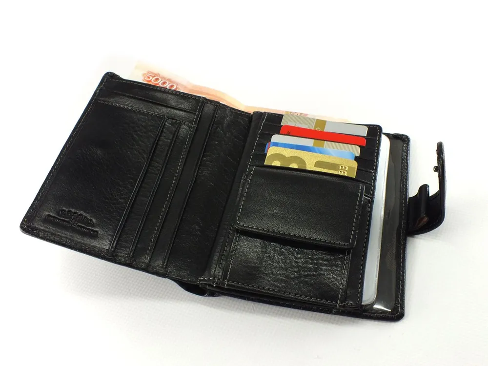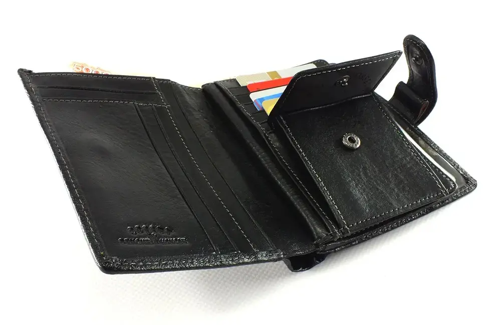 Мужской кошелёк COSSET Кошелёк изготовлен из высококачественной, натуральной кожи бренд COSSET. Кожа мягкая и тактильно приятная, швы ровные, внутри также кожа, что увеличивает срок службы изделия. Преимущества • Натуральная кожа • Высокий функционал • Компактность • Презентабельный внешний вид Отличное качество бренда COSSET, удобство, компактность, стильная подарочная коробка делает кошель прекрасным подарком мужчине по любому поводу. Размеры • Высота 14 см • Ширина 10 см • Глубина 2 см Идеальный размер и вместительность - для тех кто ценит комфорт. Высокий функционал • 2 больших отдела для купюр • Потайной карман на молнии • 5 отделений для карт и визиток • Отдел для автодокументов • Монетница на кнопке • Файлы для автодокументов