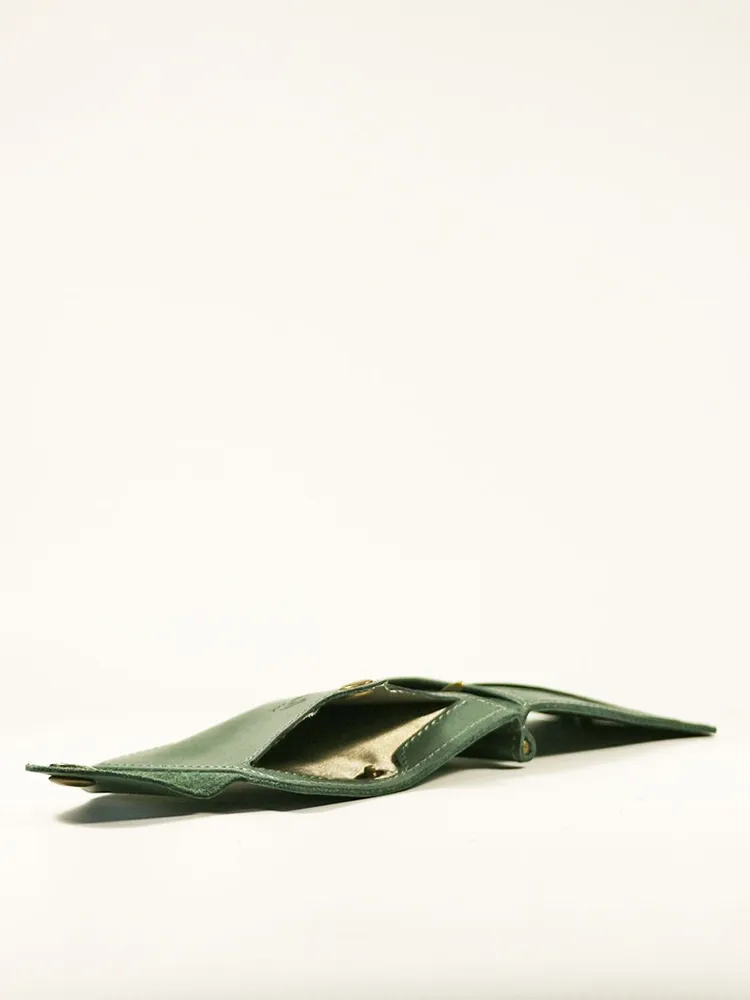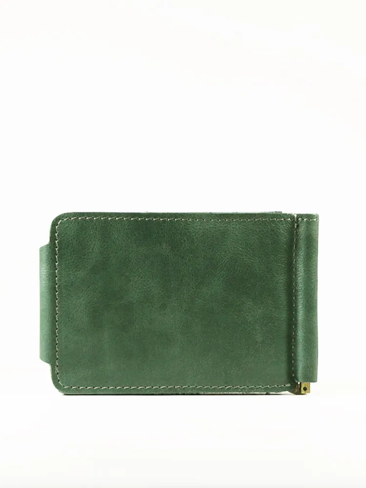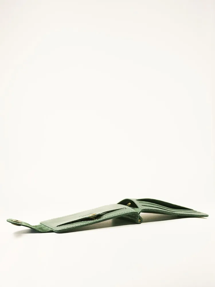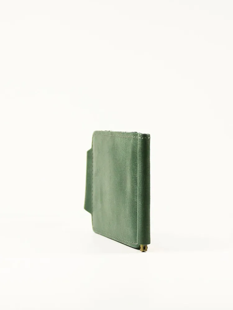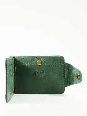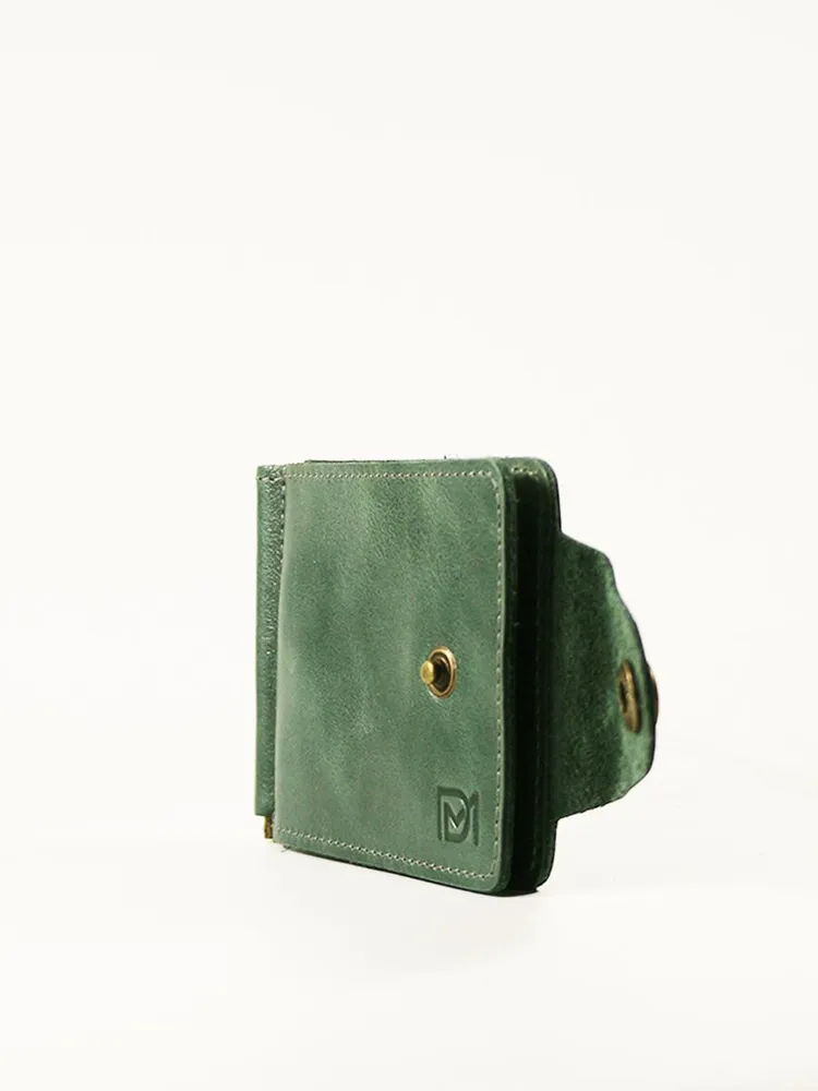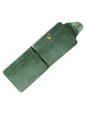 DM-ZM08-D97-R Зажим д/денег с RFID-защитой Титан зелен. Коллекция Титан зелёный D97-R, тм Domenico Morelli Мужской зажим для денежных банкнот с RFID-защитой. Выполнен из натуральной кожи Druid зеленого цвета. Закрывается на хлястик с кнопкой. Внутренний функционал: два кожаных кармана, 3 прорезных кармашка для карт, карман на кнопке с RFID-защитой (защита банковской карты от взлома), а также металлический зажим для купюр. Зажим выполнен в стиле кэжуал. Это стильный и модный аксессуар, который выгодно дополнит Ваш образ. Размер изделия 110мм*80мм. Поставляется в подарочной картонной коробке.
