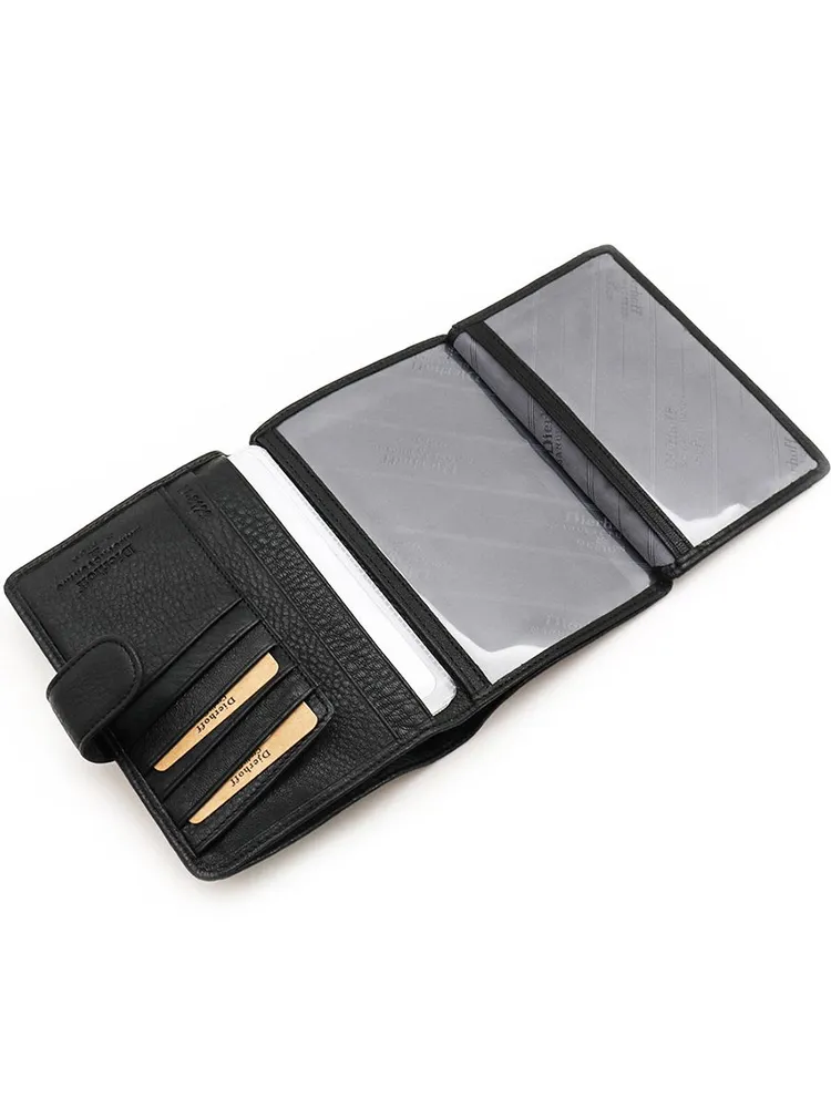 Портмоне из высококачественной, мягкой натуральной кожи. Размер 10,5 х 14.5 х 1,5 см. Закрывается на хлястик с кнопкой. Внутри два отделения для купюр и бумаг, три прозрачных окошка, девять стандартных кармашков для карт и четыре боковых кармана. Портмоне укомплектовано вкладышем с прозрачными файлами для автодокументов. Упаковано в фирменную коробку- можно использовать в качестве оригинального и практичного подарка. Декларация соответствия ЕАЭС N RU Д-RU.РА04.В.73513/22 20.07.2022.