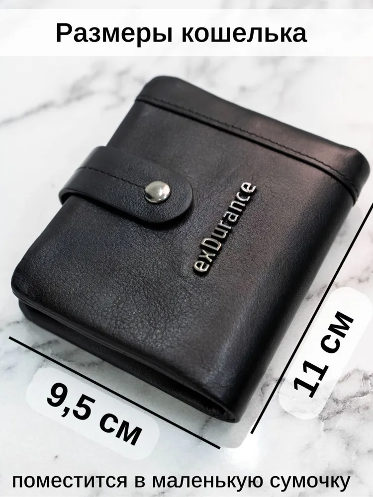 ExDurance - американский бренд, специализирующийся на аксессуарах из натуральной кожи высокого качества. Классический кошелек бренда Exdurance - небольшого размера с хлястиком на кнопке. Это удобный и практичный аксессуар для ежедневного использования. Данная модель подойдет как мужчинам, так и женщинам. Кошелек выполнен из качественной натуральной кожи: взяв в его в руки, Вам не захочется с ним расставаться. Изделие имеет множество карманов и отделений, включая съемную среднюю часть. Она прочно прикреплена к кошельку и при желании может легко сниматься. Кошелек оснащен защитой данных банковских карт от RFID - краж. Внутреннее наполнение кошелька довольно функционально: 8 слотов для банковских карт и визиток 4 боковых кармана 1 отделение для купюр 1 прозрачное отделение для фото, пропуска, водительских прав 1 отделение на молнии для мелочи 2 мини кармашка для карт памяти SD Упакован кошелек в красивый брендовый бархатный мешочек и в фирменную коробку Размеры: 11см x9.5смx 2.5см