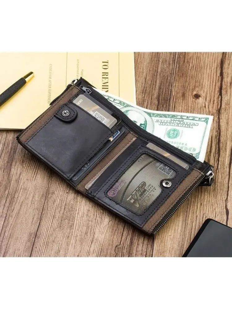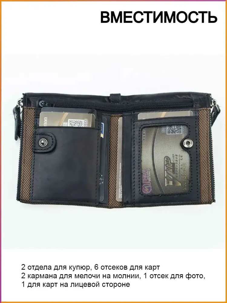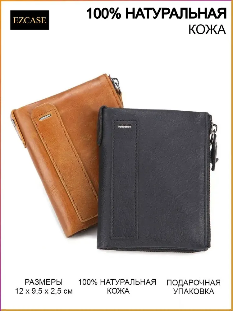 Вместительный, компактный кошелек мужской "Sakis" выполнен из натуральной телячьей кожи с применением высококачественной фурнитуры. Размеры: 12 x 9.5 x 2.5 см. Чехол для банкнот закрывается на плотную кнопку для надежной защиты содержимого. Вместимость: 2 отдела для купюр, 6 отделений для пластиковых карт, 2 отделения для мелочи на молнии, 1 отсек для фото, 1 карман на лицевой стороне. Удобный, приятный на ощупь бумажник для денег, визиток поставляется в брендовой коробочке и может служить отличным подарком мужчине и женщине. В наличии есть черный, коричневый и светло-коричневый кожаный портмане. Это практичный, оригинальный, стильный аксессуар на каждый день, в офис, в школу, в универ, для длительных поездок и путешествий. Тонкий, мягкий мини кошелек ручной работы легко помещается в карман брюк и джинс, в сумку, рюкзак, барсетку, поясную сумку, клатч. Также в нашем магазине Вы можете купить женские кошельки, зажимы, ключницы, визитницы, обложки для автодокументов, водительский прав.