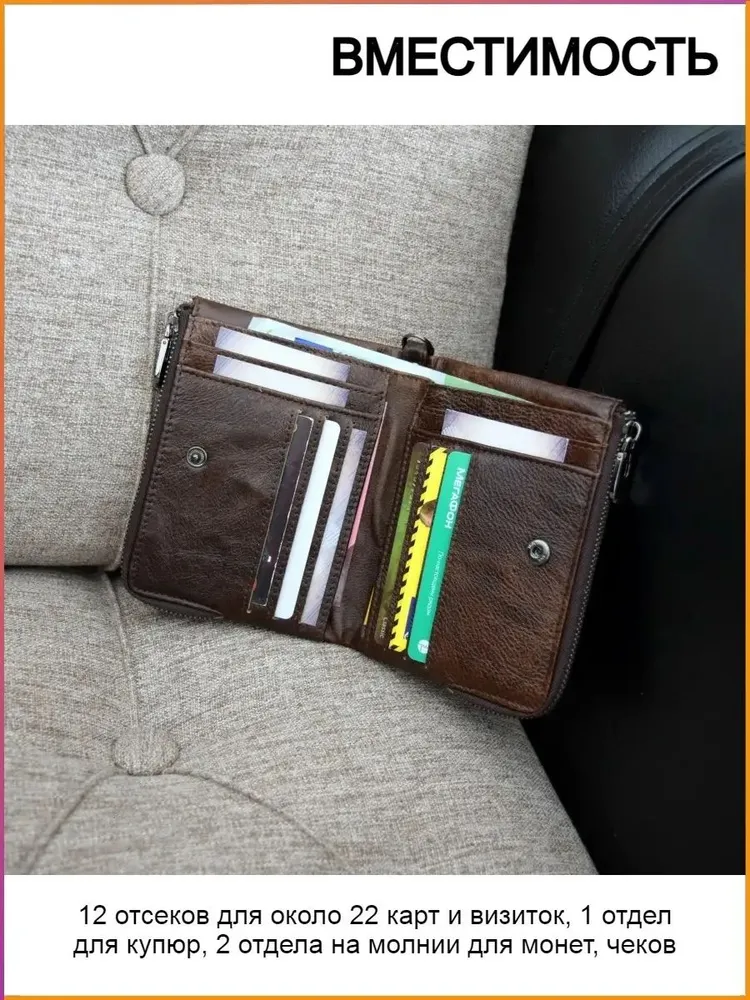 Классический складной кошелек из натуральной кожи на молнии "Lycurgus" от EZCASE подойдет для компактного хранения денежных средств. Стильный, деловой дизайн аксессуара без деталей понравится мужчинам и женщинам. Универсальная модель - можно использовать как монетницу, визитницу, картхолдер. В портмоне есть место для мелочи, банкнот, карт, визиток: 12 отсеков/слотов для банковских и пластиковых карточек, 1 кармашек для купюр, 2 отдела для монет,чеков. Удобный бумажник обеспечит целостность и сохранность денег. Широкий выбор цветов: черный, коричневый, синий, красный, светло-коричневый. Лаконичный брендовый атрибут послужит дополнением к любому образу. Благодаря фирменной подарочной упаковке, прочный, многофункциональный кошелек послужит практичным подарком на любой праздник. Преимущества модели: резка и сборка происходит на фабрике, с применением стильной высококачественной фурнитуры, мягкость и эластичность материала, качество прошивки. Гарантия: 12 месяцев. Размеры: 13х10х2 см