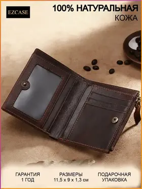 Функциональный и вместительный бумажник водителя из натуральной кожи Hypatius. Кожаное портмоне имеет 2 отдела для денег (1 на молнии), 6 кармашков для около 12 карт, 1 отсек на молнии, 1 для фото. Стильный мужской и женский кожаный кошелек выглядит солидно и престижно в руках своего владельца. С этой моделью у Вас всегда все будет под рукой. Широкая цветовая гамма позволяет подобрать аксессуар под любой стиль и настроение .Размер данного аксессуара очень компактный 11,5 x 9 x 1,3 (см). Сделайте впечатляющий подарок на Новый год, День рождение, 8 марта, 23 февраля, 14 февраля. Мягкая и приятная на ощупь натуральная кожа понравится Вашему любимому, другу, папе, коллеге, брату и молодому человеку; Подруге, маме, любимой, сестре и будет приносить радость каждый день. Важно заметить, что кошельки из кожи прочные и долговечны в использовании, а качественная фурнитура позволит долго наслаждаться приобретением. Изделие поставляется в подарочной упаковке с логотипом бренда. Гарантия 12 месяцев.
