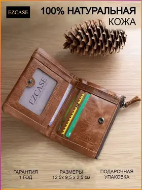 Брендовый раскладной кошелёк Yerfey ручной работы из натуральной телячьей кожи (Crazy Horse) с применением высококачественной фурнитуры от EZCASE, станет отличным подарком для мужчин и женщин на Новый год, Рождество, 23 февраля, 8 марта и день рождения другу, подруге, маме, папе, дедушке, бабушке, коллеге, любимому и любимой. Качественный бумажник упакован в фирменную подарочную коробочку с логотипом бренда. Вместимость портмоне идеально подходит, когда нужно взять с собой всё самое необходимое. Размеры: 12,5 x 9,5 x 2,5 (см). Вместимость: 2 отдела для денег (1 на молнии для мелочи и монет), 6 кармашков для карт и визиток, 1 отсек на молнии, 1 для фото. Гарантия 12 месяцев. Скидка на следующую покупку. Бумажник это не только универсальный и модный аксессуар, но и абсолютно необходимый атрибут для каждого человек, который подчеркнет его индивидуальность. Откройте для себя коллекцию премиум кошельков и аксессуаров из кожи от EZCASE!