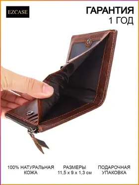 Мужской и женский кожаный кошелек "Hypatius" от EZCASE (Изикейс) станет Вашим незаменимым аксессуаром для хранения карт, визиток, денег и монет. Отличная вместительность - 2 отдела для денег (1 на молнии), 6 кармашков для около 12 карт, 1 отсек на молнии для мелочи и монет, 1 карман для фото. Качественная и прочная фурнитура. Вместительный и в то же время компактный картхолдер в классическом стиле представлен в 4 цветах: черный, темно-коричневый, светло-коричневый и красный. Элегантный чехол упакован в дизайнерскую брендовую коробку, поэтому данный маленький кошелек является отличным оригинальным подарком на рождество, 14 февраля, 8 марта, день учителя, день матери и будет стильным подарком шефу, женщине, любимому, жене, сестре, супругу, сыну. Фабричное производство (Резка и сборка бумажника из натуральной кожи происходит на фабрике по нашему заказу)- Срок гарантии: 12 месяцев- Размеры: 11,5 * 9 * 1,3 (см)