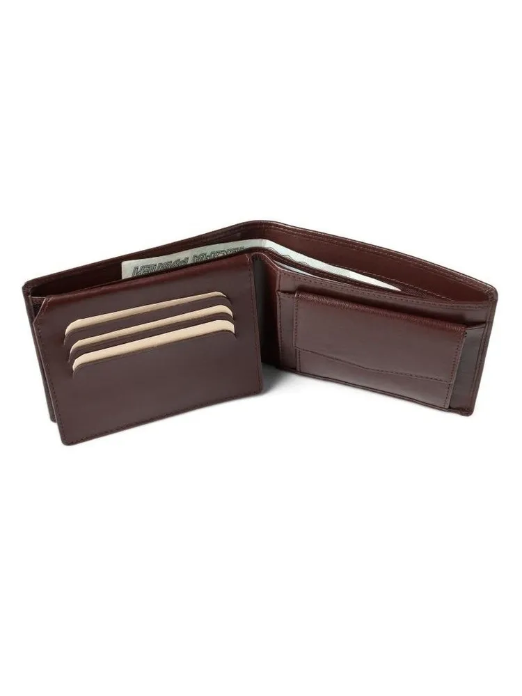 Портмоне мужское из 100% натуральной кожи станет незаменимым помощником в повседневной жизни. Бумажник компактный, его размер всего – 12,5х9,5 см. Его удобно носить в кармане джинс, пиджака, сумки или рюкзака. Кошелек мужской не имеет застежки, поэтому не создает неудобств, смотрится лаконично и дорого. Внутри есть самые необходимые отделы: ● 2 отделения для купюр; ● монетница; Также картхолдер содержит 3 кармана для карт. Бумажник мужской для документов прошит качественно – все строчки ровные. Кожа не пахнет, мягкая и имеет приятную фактуру на ощупь. Выбирайте портмоне мужское для подарка своим мужчинам на любой праздник! Аккуратно упакован в фирменную коробку. Приходит без заломов, неровностей и повреждений. Мужской кожаный бумажник подойдет для всех мужчин: от любителей классики до спортивного стиля.