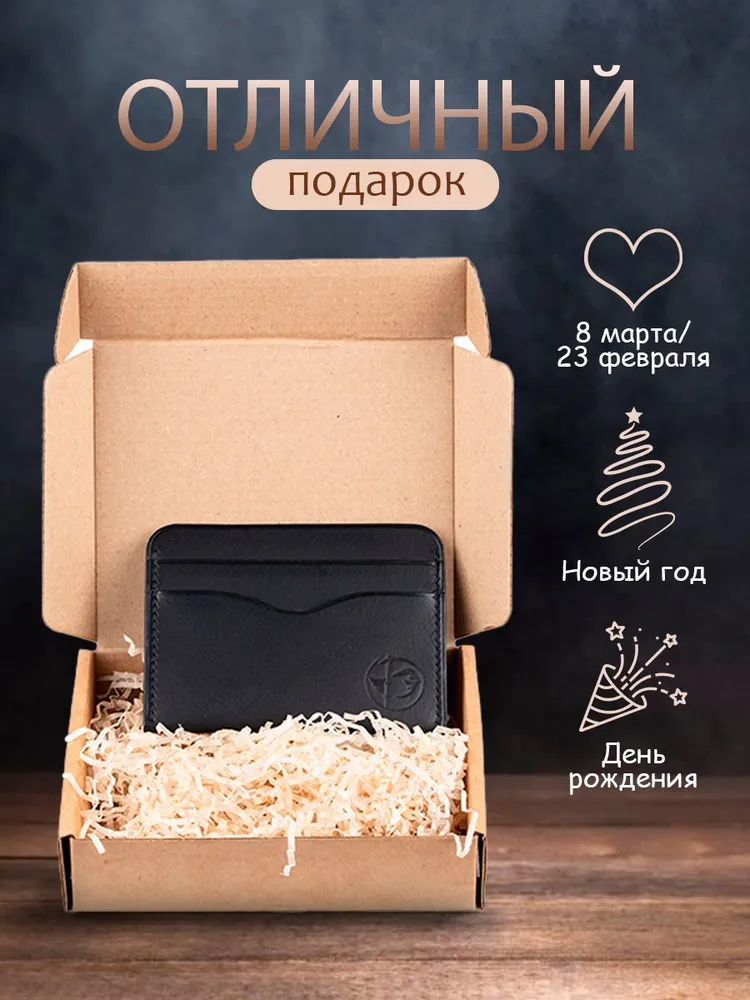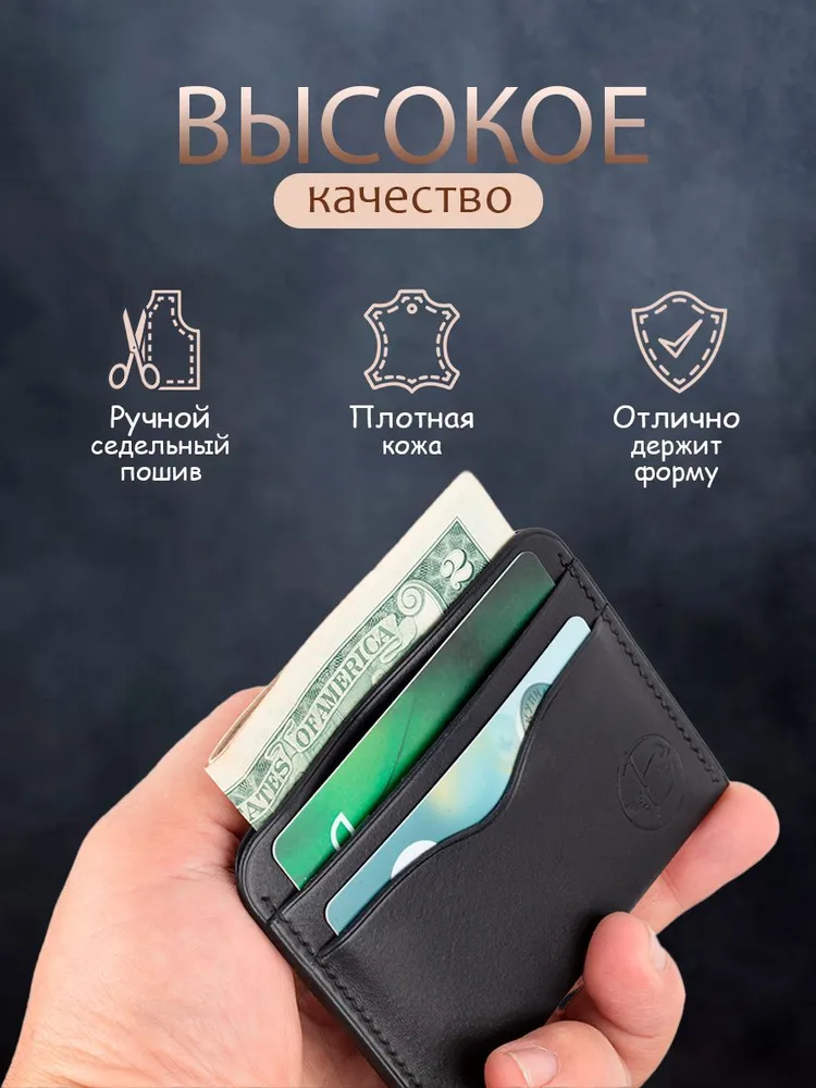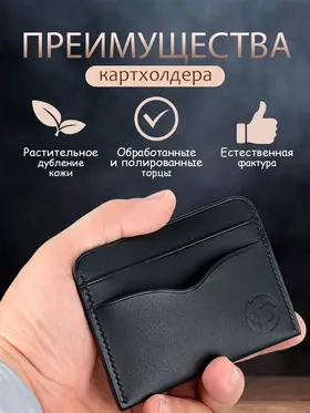 Стильный кардхолдер из натуральной кожи ручной работы Минималистичный аксессуар для тех, кто ценит качество и долговечность. Особенности: 100% натуральная итальянская кожа растительного дубления (Tempesti). Ручной седельный шов льняной нитью, полированные и окрашенные торцы. Плотная кожа 1 мм, отлично держит форму, прочная и долговечная. Функционал: 3 слота для банковских карт, визиток, водительских прав. 1 слот для купюр в сложенном виде. Компактный размер: 10,4 × 7,7 см — легко помещается в карман джинсов или пиджака. Преимущества: ✔ Минималистичный дизайн, подходит мужчинам и женщинам. ✔ Изготовлен вручную с вниманием к каждой детали. ✔ Поставляется в подарочной упаковке с логотипом. Важно! Мы используем только натуральную кожу растительного дубления. Со временем она покрывается благородной патиной, становясь еще красивее. Возможны незначительные природные неровности — это признак натурального материала.