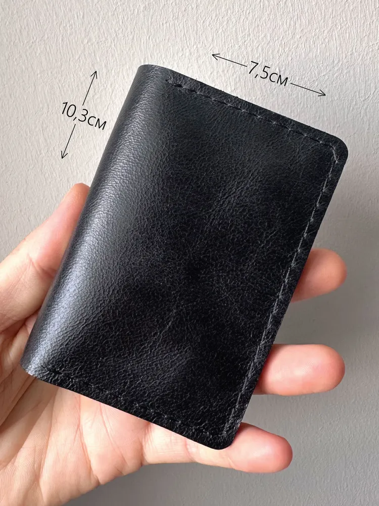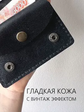 Карманный кошелек ручной работы из натуральной кожи "винтаж" чёрный