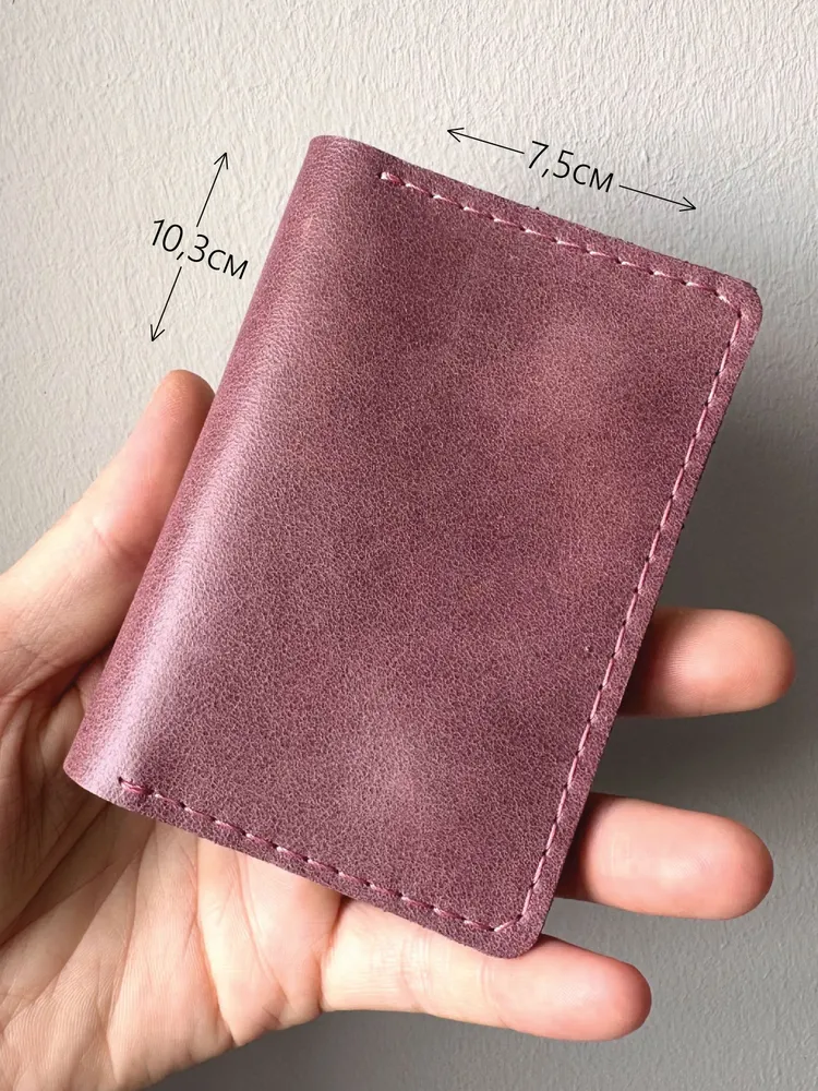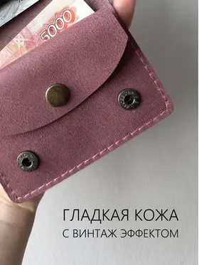 Карманный кошелек ручной работы из натуральной кожи "винтаж" лиловый