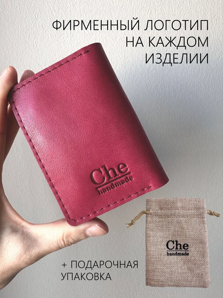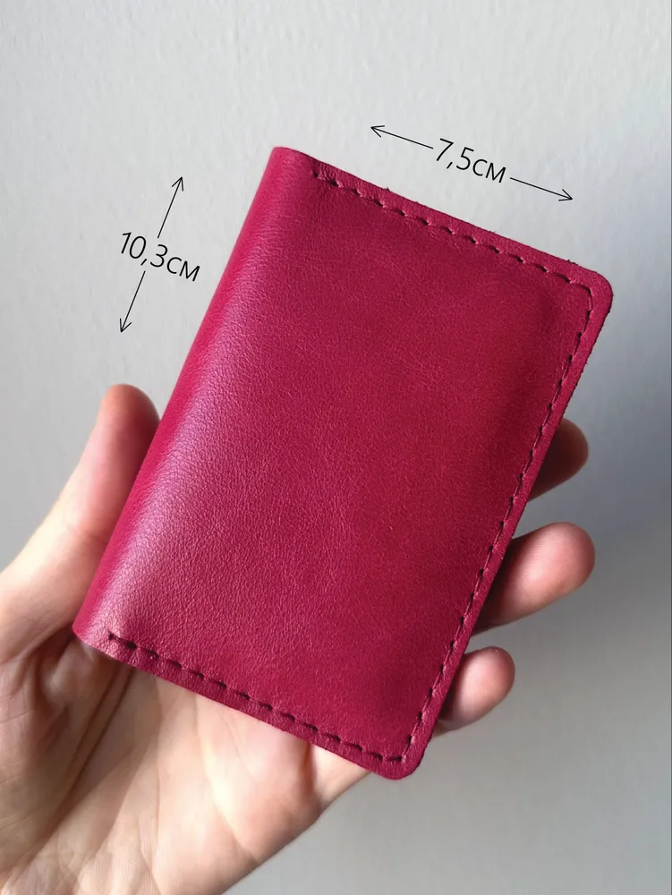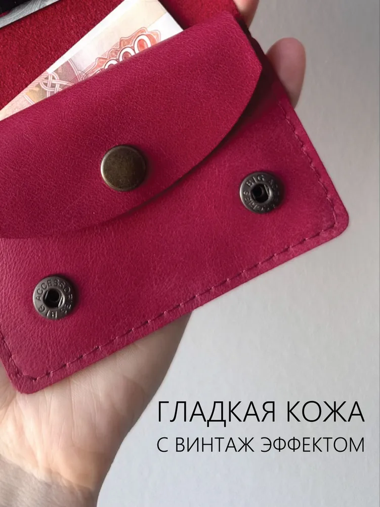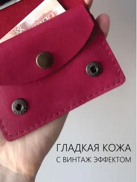 Карманный кошелек ручной работы из натуральной кожи "винтаж" малиновый