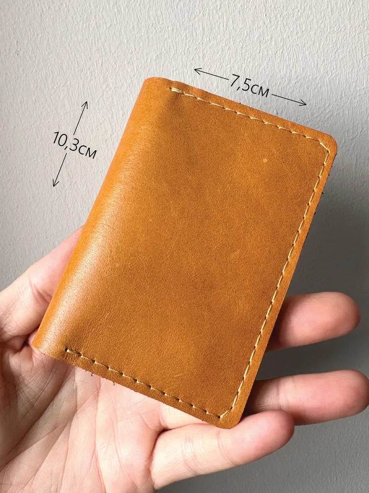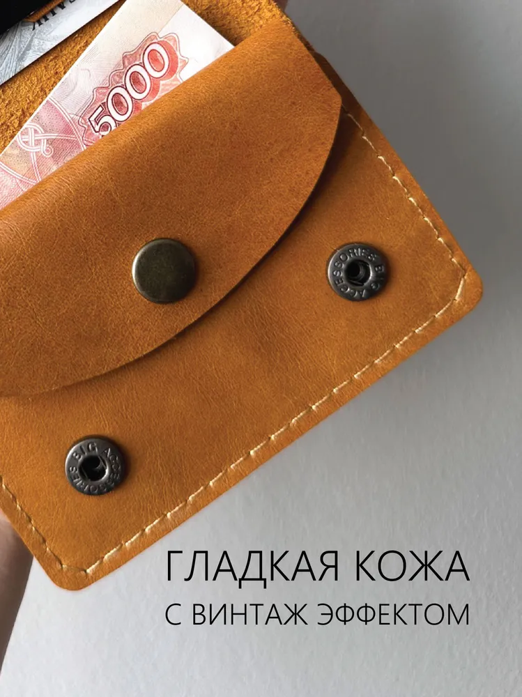 Карманный кошелек ручной работы из натуральной кожи "винтаж" жёлтый