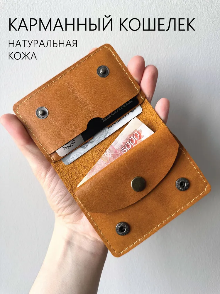 Кошелёк карманный унисекс из кожи люкс «винтаж» 100% ручная работа Качественная европейская фурнитура 2 отделений для карточек, 1 карман под мелочь, 1 отделение для купюр Размер 103/75/8 мм *КОШЕЛЁК ИЗ КОЖИ ДРУИД ВИНТАЖ УНИСЕКС РУЧНАЯ РАБОТА* Эксклюзивный кожаный кошелек ручной работы из благородной кожи друид в винтажном стиле – элитный аксессуар для ценителей натуральных материалов. Премиальная кожа друид с характерной фактурой, тщательная ручная сборка и европейская фурнитура создают уникальный кошелек-винтаж, который с годами становится только выразительнее. *ОСНОВНЫЕ ХАРАКТЕРИСТИКИ:* - 100% ручная работа: уникальный экземпляр с идеальной прошивкой - Кожа друид : плотная фактурная кожа с благородной патиной - Фурнитура европейского производства: износостойкие кнопки - Универсальный унисекс дизайн: идеальный мужской кошелек и женский кошелек *ПРАКТИЧНАЯ КОНСТРУКЦИЯ КОШЕЛЬКА ДРУИД:* * 2 отдельных слота для банковских карт * Вместительный карман для мелочи на кнопке * Основное отделение для купюр (оптимизировано под рубли/доллары/евро) * Ультракомпактный формат 103х75х8 мм – мини кошелек для денег *ПРЕИМУЩЕСТВА КОЖИ ДРУИД:* ► Натуральная кожа друид с уникальной текстурой и "эффектом памяти" ► Винтажный кошелек из кожи друид приобретает индивидуальный рельеф ► Исключительная износостойкость и благородное старение материала ► Экологичная дубленая кожа без химической обработки *ОСОБЕННОСТИ РАЗМЕРА И ДИЗАЙНА:* Компактный кожаный кошелек друид 103х75х8 мм легко помещается в карман джинсов или маленькую сумку. Вес всего 95 г делает этот мини кошелек для карт практически неощутимым. Кожа друид с характерной фактурой создает эффект винтажного аксессуара ручной работы уже при первом использовании. *ДЛЯ КОГО ЭТОТ АКСЕССУАР?* → Ценит натуральные материалы и кожу друид в частности → Ищет эксклюзивный кошелек ручной работы с историей → Предпочитает винтажные кожаные аксессуары унисекс → Нуждается в практичном кошельке для карт и наличных *КОЖА ДРУИД – ОСОБЫЙ ШАРМ:* Благородная кожа друид в этом винтажном кошельке обладает уникальной способностью формировать индивидуальный рельеф под владельца. С каждым месяцем использования ваш кожаный кошелек друид будет приобретать неповторимый характер, сохраняя при этом первоклассную функциональность отделений для карт, мелочи и купюр. *ИДЕАЛЬНЫЙ ПОДАРОК:* Винтажный кошелек из кожи друид ручной работы – статусный подарок для мужчин и женщин, ценящих экологичные натуральные материалы, европейское качество фурнитуры и вневременной дизайн. Кошелек друид подчеркнет индивидуальность владельца и прослужит десятилетия!