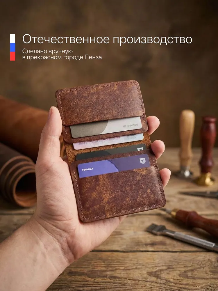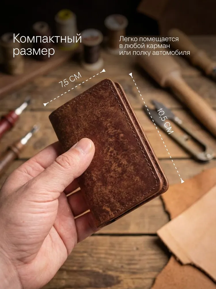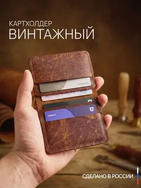 Картхолдер из натуральной кожи винтажный коричневый цвет / Кошелёк для карт / Визитница / Держатель карт / Подарок мужчине, женщине