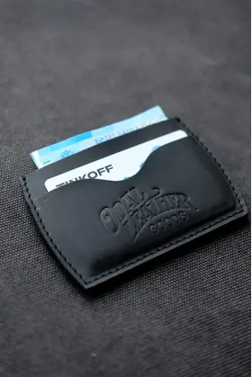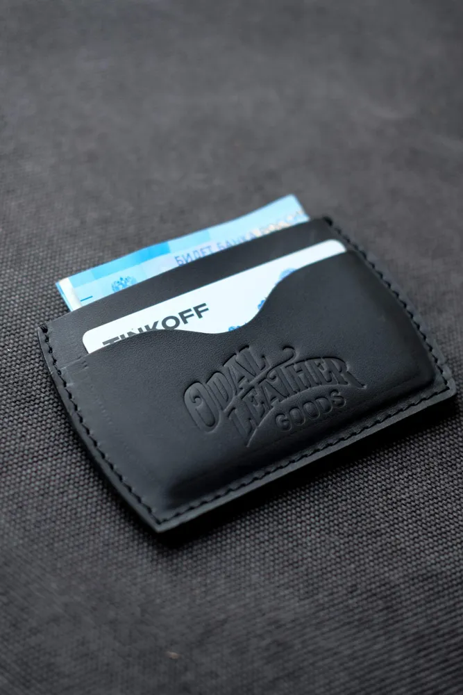 Размер кардхолдера 105×79×4мм, вес всего 24 грамма. Выполнен из качественной натуральной кожи с винтажной отделкой. На кошельке так же установлен логотип бренда. Выглядит максимально брутально и минималистично, подойдет как мужчинам так и хрупким девушкам. Идеальный подарок. С каждой стороны картхолдера находится отделения для двух банковских карт(до 4х) и отделение для банкнот посередине. Со временем каждый кошелек приобретает свой уникальный оттенок, что подчеркивает эксклюзивность данной вещи. Сделано вручную в Санкт-Петербурге.