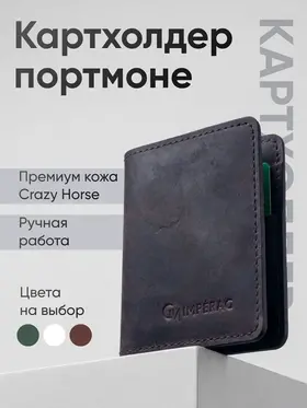 Картхолдер мужской из натуральной кожи ручной работы, портмоне из натуральной кожи