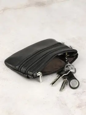 Вместительная и функциональная ключница-кошелек послужит удобным аксессуаром на каждый день. Внутри кольцо на цепочке для ключей размера до 12 см . Снаружи - два отделения на пластиковой молнии, которое можно использовать для мелочи , купюр или кредитных карт. Сзади открытый карман , куда помещается СТС на автомобиль.