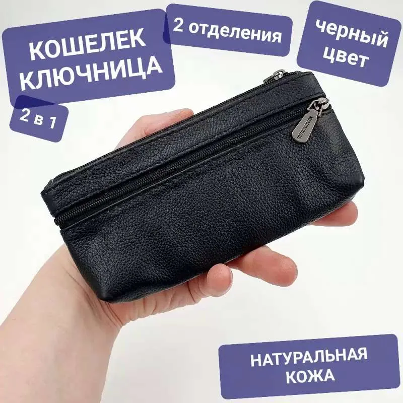 Натуральная кожа КРС. Вместительная и удобная. 2 кармана. Аннотация: Удобная и вместительная ключница - кошелек из натуральной кожи КРС. Имеет два кармана. Один основной карман для ключей и второй карман для разных мелочей - деньги, карты, разные записки и все что угодно. Ключница подойдет для большой связки ключей и будет практичным приобретением. Подойдет как мужчинам, так и женщинам. Можно подарить на любой праздник или купить себе. А носить карманную ключницу можно в руке, сумке, рюкзаке, портфеле и тд. Отлично подойдет для того что бы не брать с собой большую сумку на прогулку или простой пройтись в магазин, пойти на обед или вечером в кафе. Размеры ключницы - 8 см * 16,5 см * 2 см.
