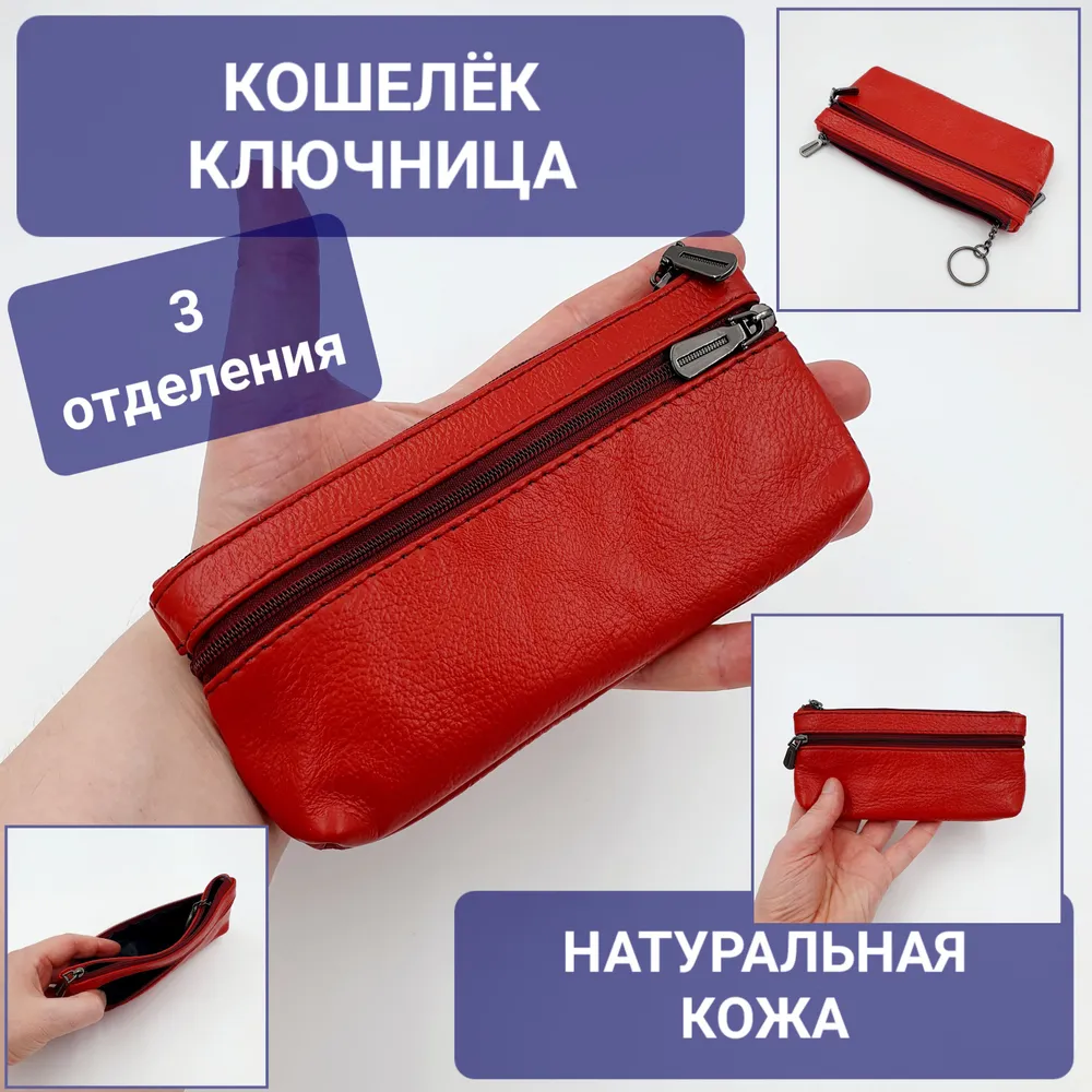 Вместительная: Кошелек - ключница имеет 1 основной отдел и 2 боковых кормана. Все имеют свою молнию. Легко поместятся: длинные ключи, карты, мелочь, бумажные деньги. Натуральная кожа: Кожа КРС. Аннотация: Ключница из натуральной кожи - отличный подарок для мамы, сестры, жены, друга, дочери, сына, папы, бабушки или дедушки. Универсальная модель. Размер: 170*80*20 мм Материал: натуральная кожа Тип застежки: молния Основное отделение закрывается на молнии, внутри есть одно кольцо для ключей. Дополнительно имеются два отделения на молнии на передней и задней сторонах. * Внимание: реальные цвета могут отличаться от изображения на мониторе, это может быть связано с индивидуальными настройками Вашего монитора.
