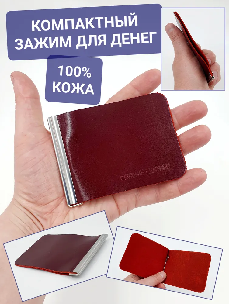 Натуральная кожа: Кожа КРС. Компактные размеры. Аннотация: Размеры: 102*74*3мм Материал: натуральная кожа Кожаный зажим для денег - стильный и удобный аксессуар. Зажим представляет собой обложку из качественной натуральной кожи для денежных купюр. Купюры удерживаются в обложке с помощью металлического зажима. Зажим для денег, выполнен в мягкой,но достаточно толстой коже высокого качества. Приятный и респектабельный подарок для Ваших близких, друзей, коллег! В комплект в одном стиле и в одном цвете кожи можно выбрать портмоне, обложку для паспорта, визитницу и прочее. * Внимание: реальные цвета могут отличаться от изображения на мониторе, это может быть связано с индивидуальными настройками Вашего монитора.