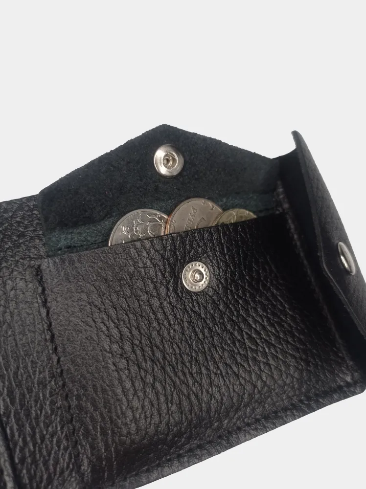 Кошелек Barez изготовлен из мягкой натуральной кожи высокого качества. Данная модель компактная, стильная и простая - то, что нужно современному мужчине. Кошелек мягкий, тонкий и маленький, что позволяет носить его в любых карманах. Портмоне закрывается на кнопку, внутри есть три отделения для пластиковых карт или визиток, а также карман для мелочи. Благодаря отсутствию подкладочной ткани карты сидят в отделениях очень плотно и не выпадают. Внимание! На первых днях использования карты могут заходить туго. Но так как изделие выполнено из качественной натуральной кожи, после нескольких дней использования кармашки растянутся.