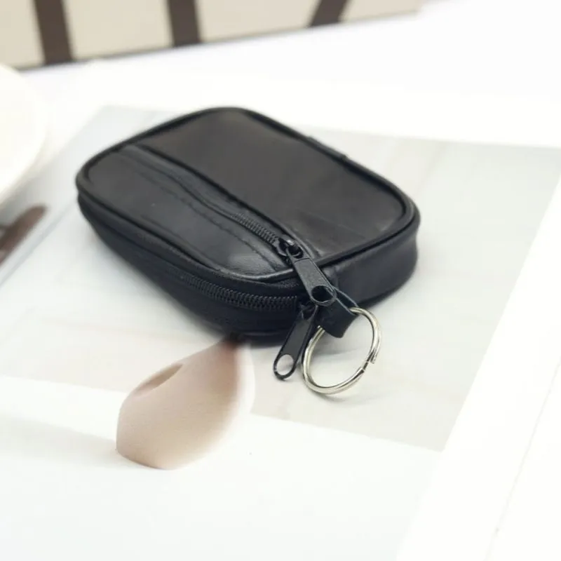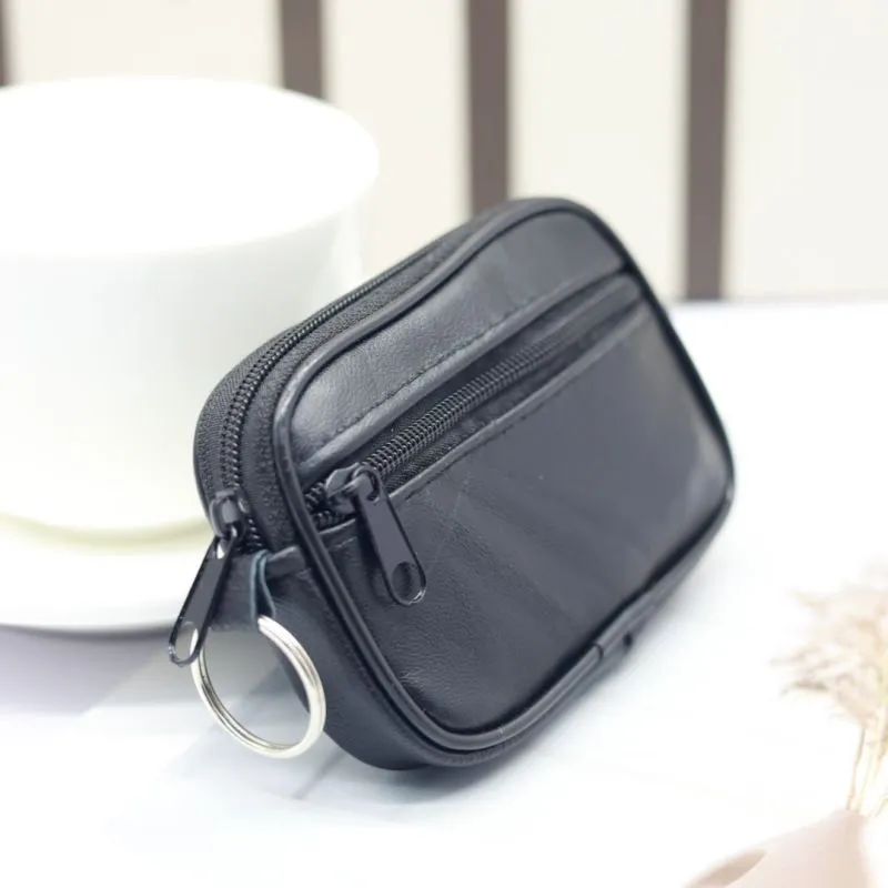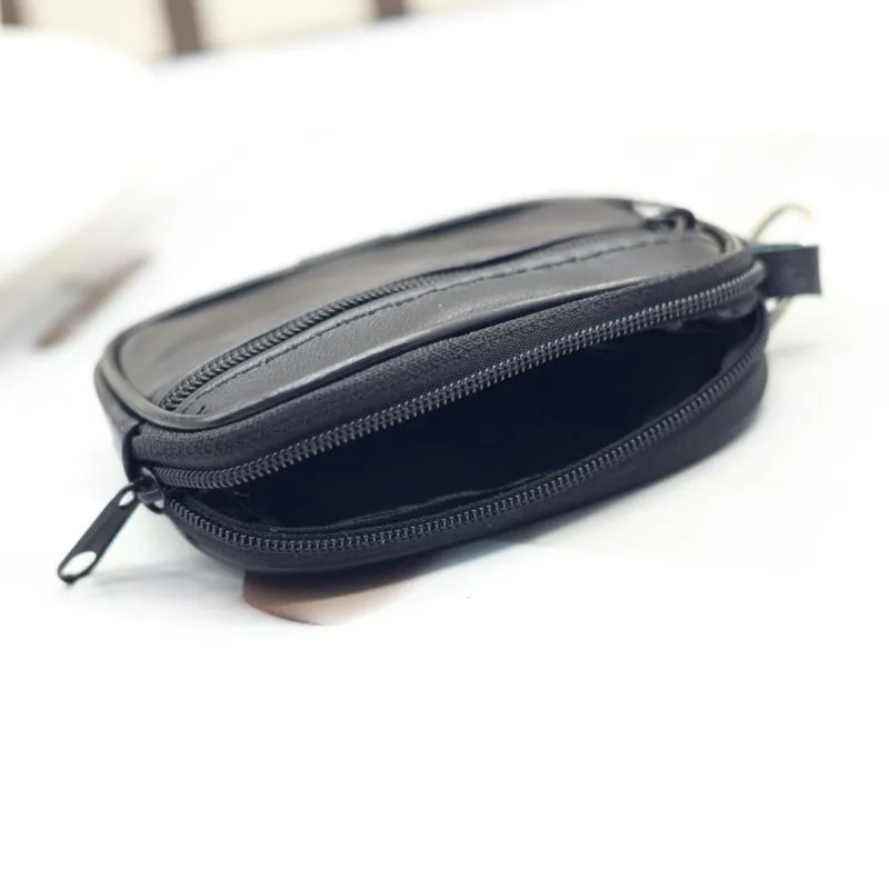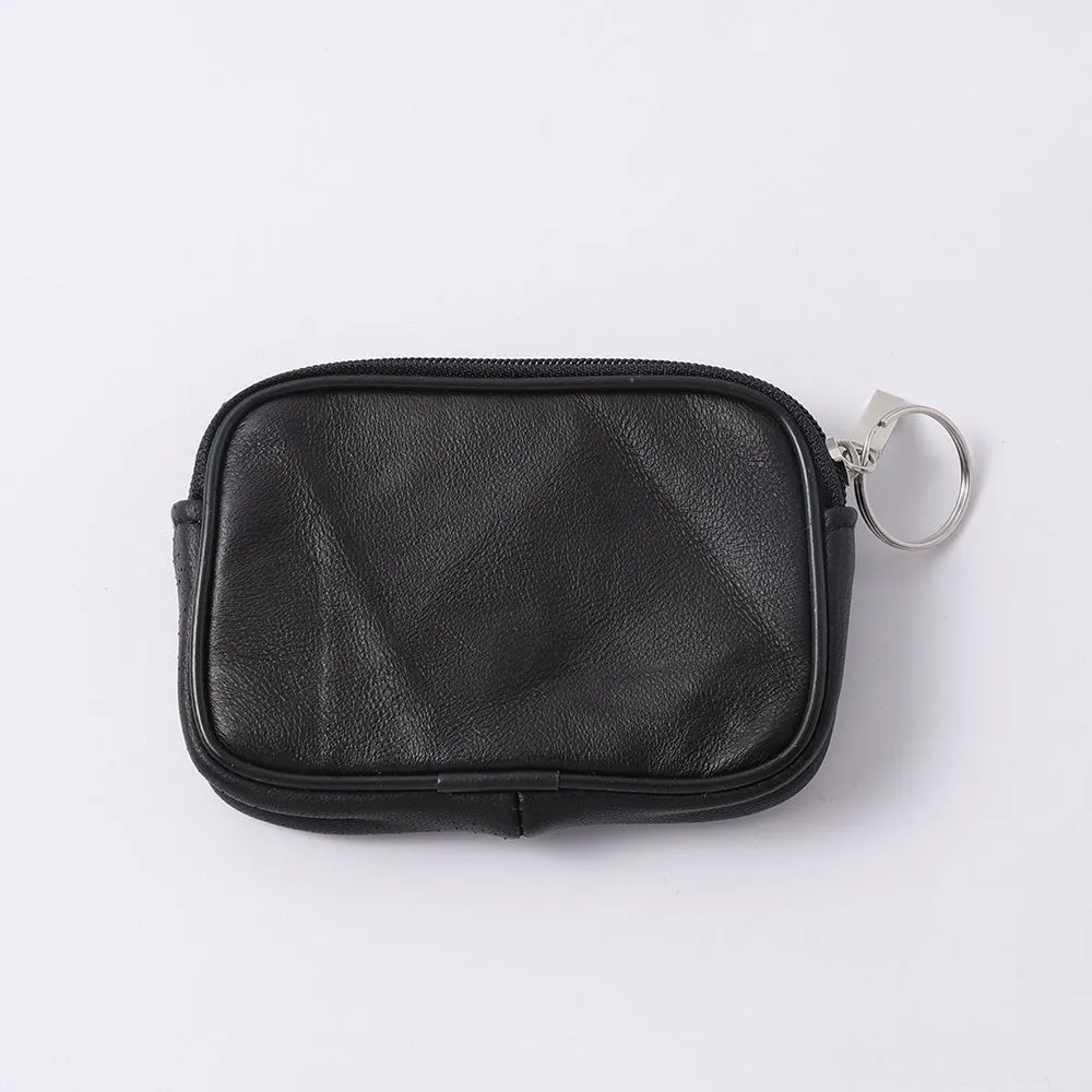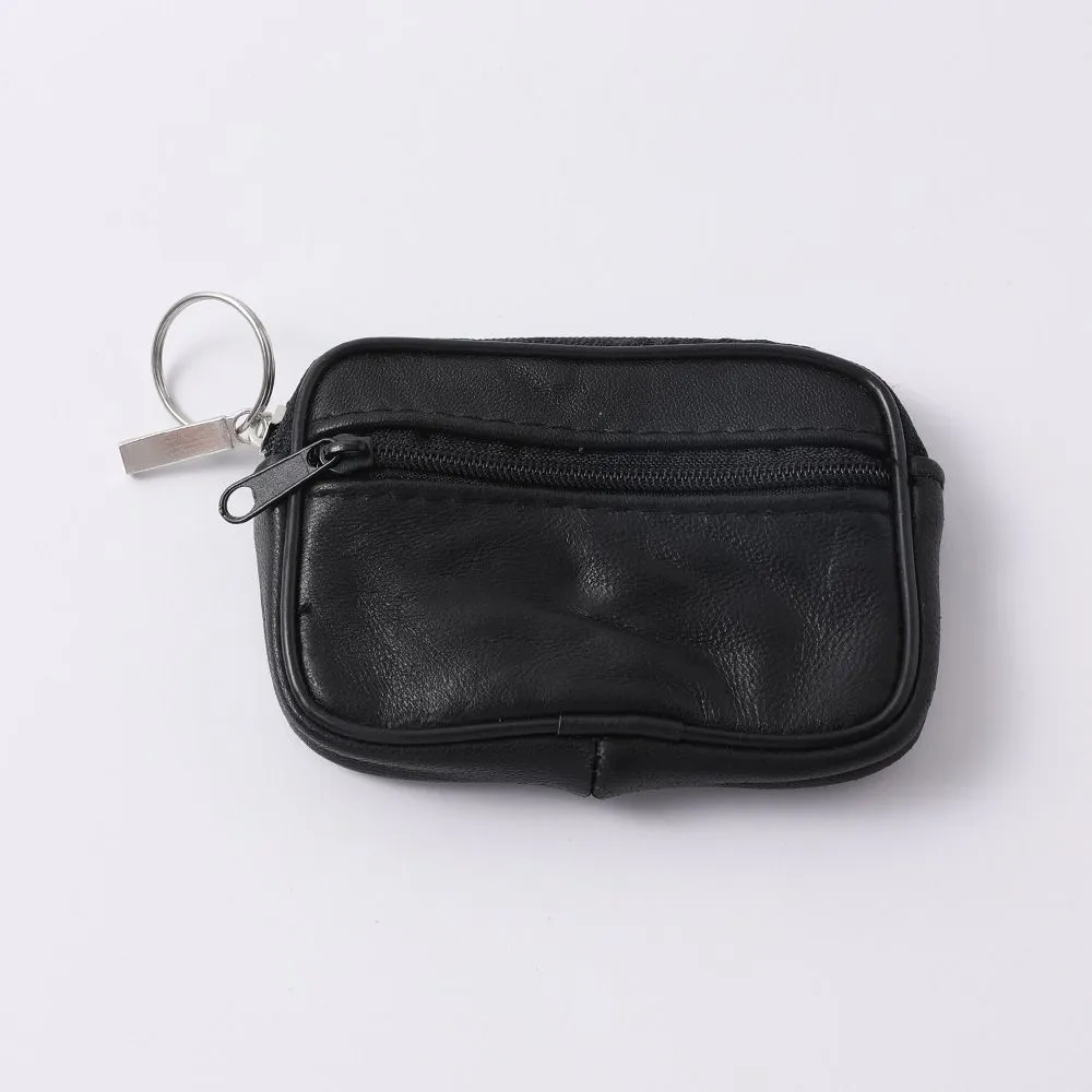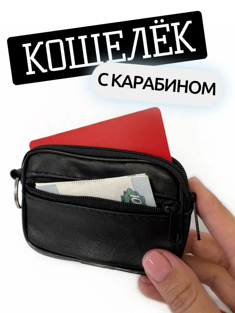 Кошелёк-брелок на карабине из натуральной кожи, картхолдер, монетница, черный