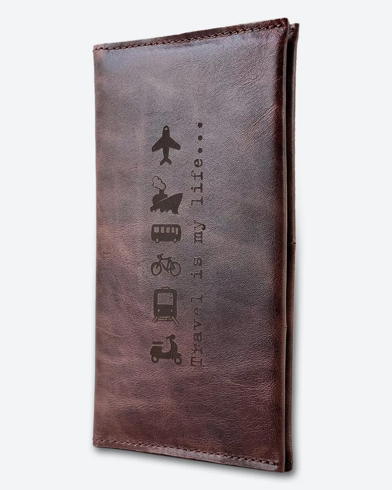 Кошелек для путешествий большой натуральная кожа портмоне Travel темно-коричневый мрамор KAZA