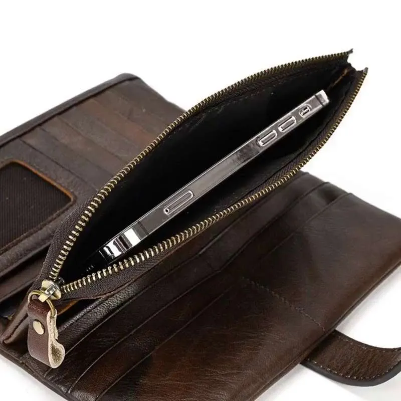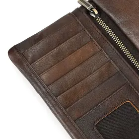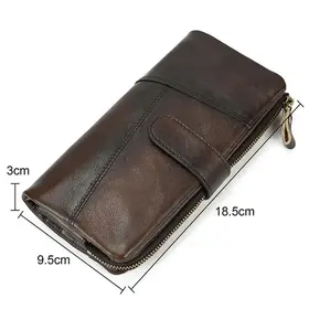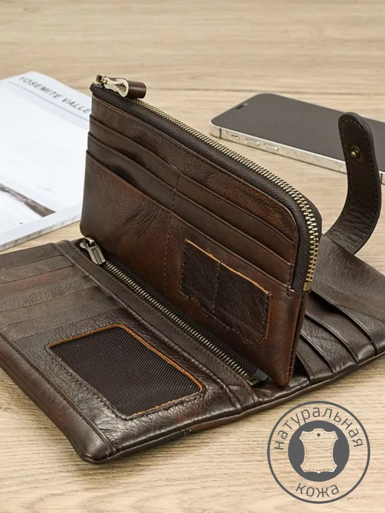 Имидж каждого мужчины кроется в деталях и, конечно же, такой деталью является первоклассный кошелек! Представляем Вам эксклюзивный мужской кошелек "два в одном"– символ роскоши и стиля. Изготовленный из воловьей натуральной кожи премиум класса в классическом коричневом цвете с элементами ретро-классики, он обладает неповторимым брутальным видом. Но его красота не только внешняя – качество этого кошелька прекрасно превосходит все ожидания. Функциональный дизайн позволяет легко разместить все важные вещи: отделение на молнии для телефона и автодокументов, дополнительные карманы, слоты для карт и визиток, для sim-карт – ничего не будет лишним. Обратите внимание на отстегивающийся полноценный кошелек картхолдер с молнией и несколькими отделениями, который Вы можете использовать отдельно от основного бумажника! Важно отметить качество фурнитуры – сделана безупречно и прочно, что позволит сохранить первозданный вид портмоне на долгие годы. Каждое отделение и кармашки прошиты качественно с особой аккуратностью, что позволяет легко достать нужную вещь в любой момент. Но это не все! Мужской кошелек также оборудован RFID-защитой, которая обеспечит безопасность ваших банковских карт от сканирования. Ваши деньги находятся под надежной защитой. Компактный и удобный, бумажник легко помещается в барсетку, кросс-боди, мессенджер, рюкзак, сумку через плечо. Превосходное качество, надёжность и износостойкость – вот что выделяет этот кошелек из сотни аналогичных изделий! Это отличное решение для подарка на любой праздник или просто, чтобы сделать приятный сюрприз вашим близким. Поставляется в брендированной коробке.