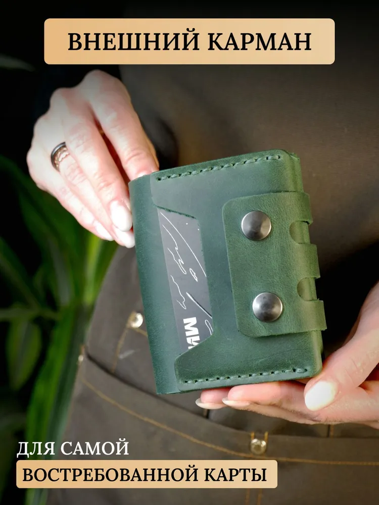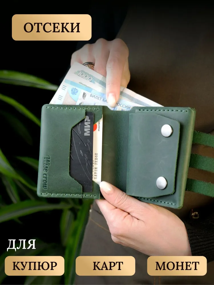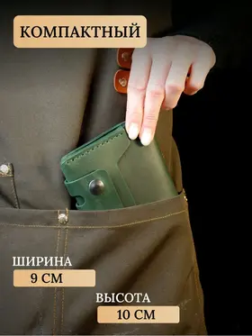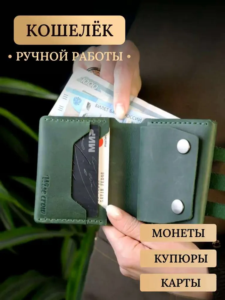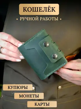 Компактный кошелек из натуральной кожи ручной работы. Имеет отсек для купюр, три слота для карт и карман для монет. Один из кармашков для карт расположен с внешней стороны. Это упрощает доступ к самой востребованной карте и позволяет расплачиваться без открывания кошелька. Кошелек сделан вручную из натуральной кожи с эффектом "crazy horse". Это специальная восковая обработка, благодаря которой появляется неравномерный окрас и винтажный вид. Кожа светлеет на сгибах, на ней легко остаются царапины и также легко затираются. Изделия из такой кожи с каждым годом становятся только лучше! Толщина кожи 1,4-1,6мм. Изделие сшито вручную, шорным швом. Такой шов намного прочнее, чем машинный. Нить- сложного плетения, вощеная, 0,8мм толщиной. Этот кошелек - отличный подарок для себя или близкого человека! В комплекте идет стильная подарочная упаковка. Мы создаём изделия из кожи с 2014 года. Все материалы были протестированы годами. Срок службы этого кошелька действительно неограничен. Ручная работа Все наши изделия создаются опытными мастерами вручную. Обработка кожи, прошивка, раскрой - все делается одним мастером "от и до". Никаких конвееров и бездушных машин! Большой опыт Мы шили изделия из кожи еще до того, как это стало мейнстримом) Мастерская основана в 2014 году. За эти годы мы отшили тысячи изделий и отправили их по всему миру. Качество Качество продукции всегда было и остается нашим главным приоритетом. Мы не конкурируем с масмаркетом. Мы делаем лучше.