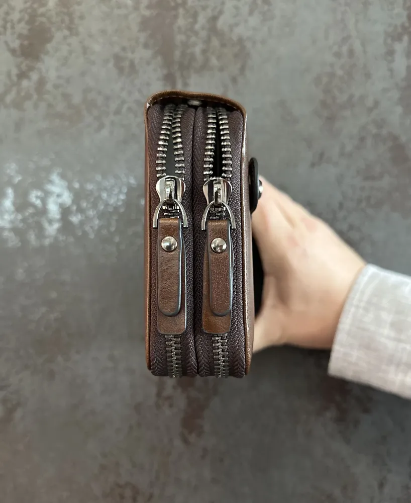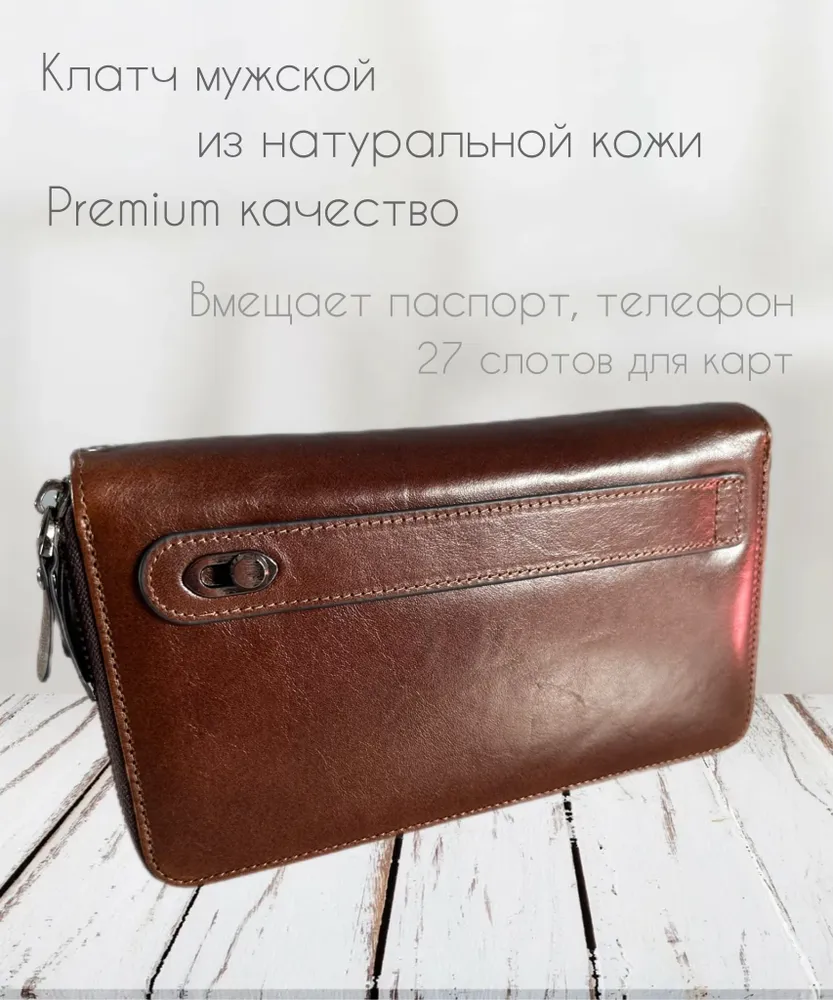 Портмоне с маркировкой LEOSTREET, мужское из натуральной кожи - отличное сочетание классического дизайна и функциональности. Данная модель совмещает в себе клатч мужской, кошелек мужской, портмоне мужское, барсетка мужская. Кошелёк из натуральной кожи вместит в себе телефон, паспорт, водительское удостоверение, купюры, снилс, 27 банковских или дисконтных карт. Кошелёк-клатч имеет 2 отделения на молнии, 27 карманов для карт, 1 основное отделение для купюр, 2 кармана без молнии. Портмоне имеет подвижную ручку на задней стороне для надежной фиксации в руке и съёмный ремешок. Кошельки для мужчин это всегда особый вид подарка который будет радовать своего счастливого обладателя не один год. Портмоне из кожи для документов и денег - это стиль и практичность в одном решении. Идеальное решение для подарка!