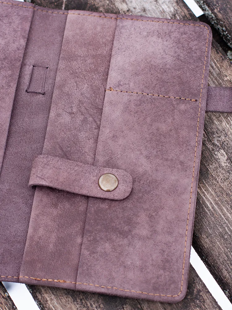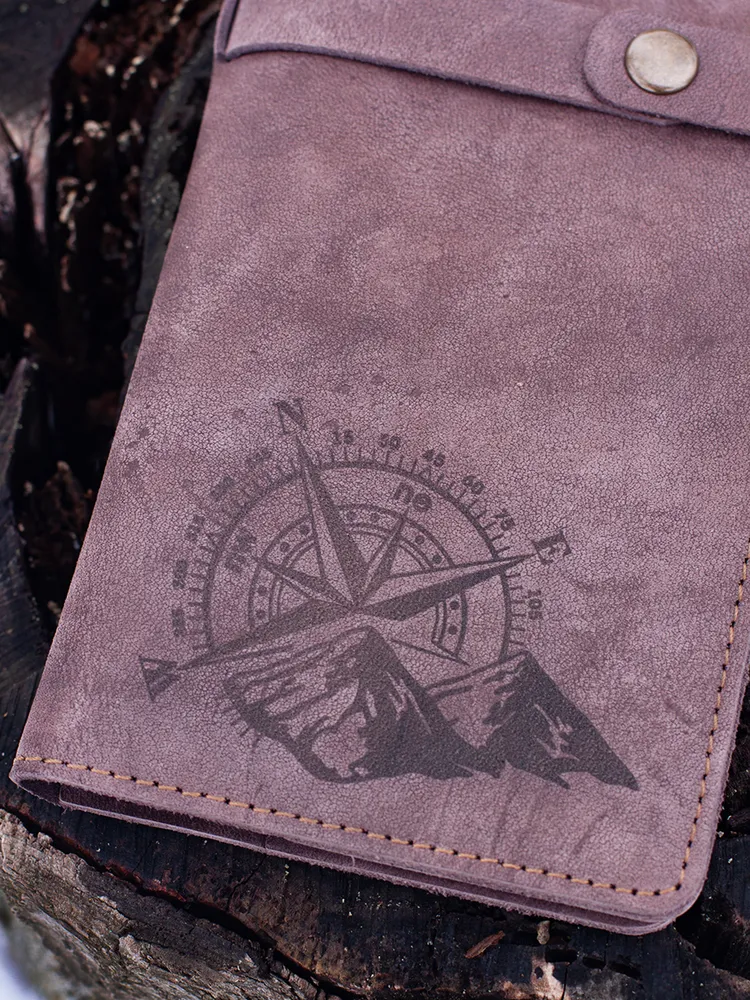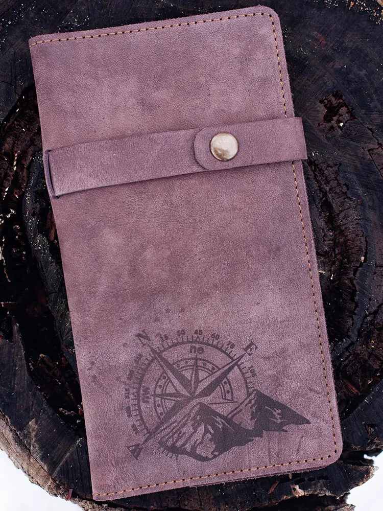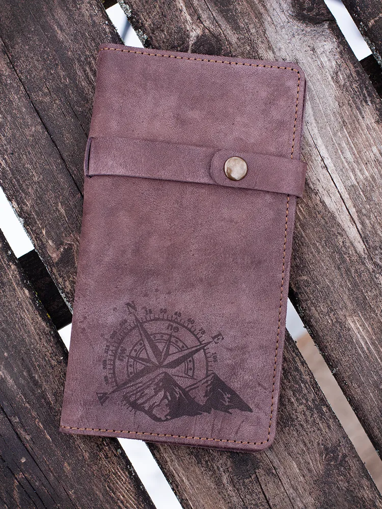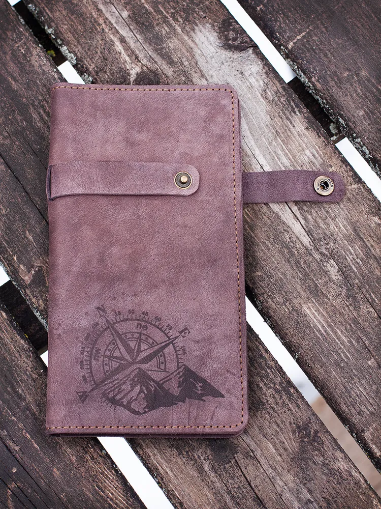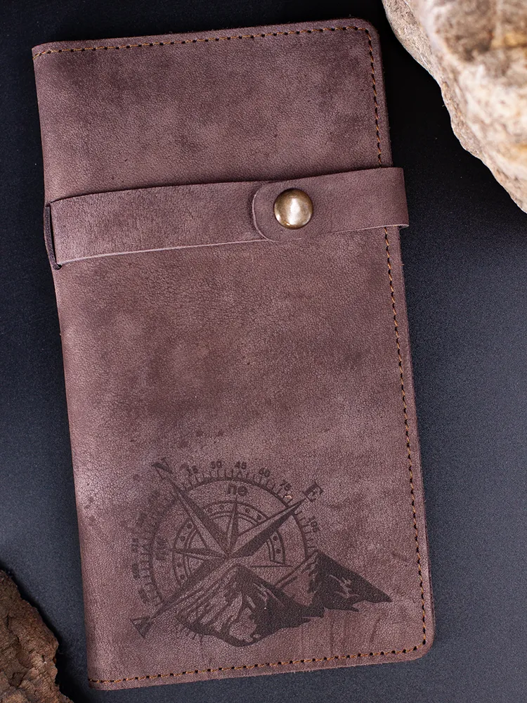 Кошелек из натуральной кожи в стиле винтаж без кнопок. Вмещает в себя два отделения под купюры, отделение под мелочь, три больших отделения под карты. Так же, есть возможность носить в кошельке паспорт и автодокументы.