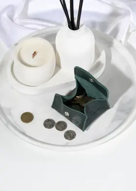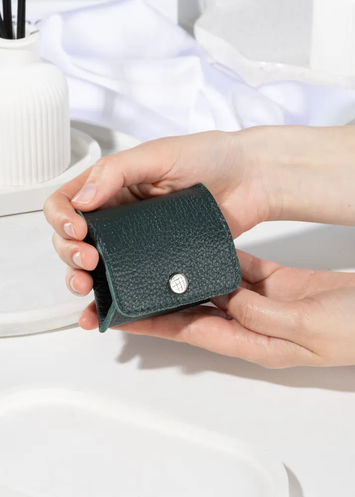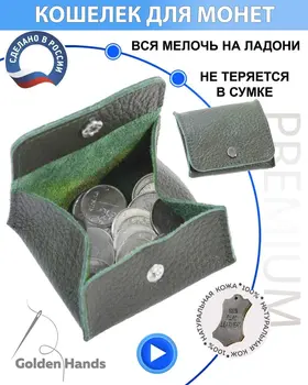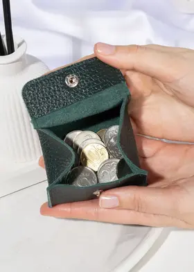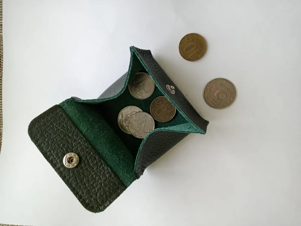 Кошелек монетница кожаная Зеленая