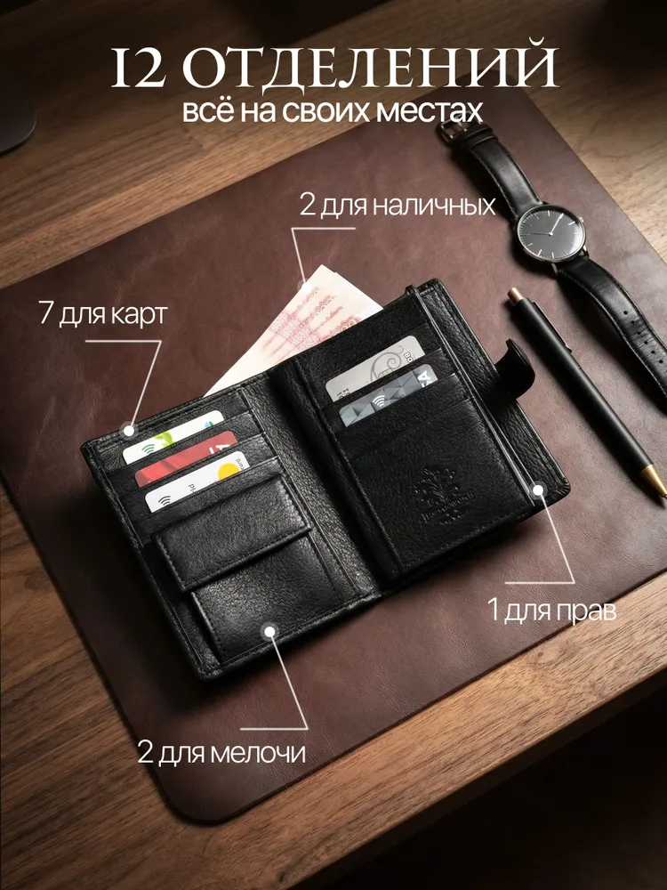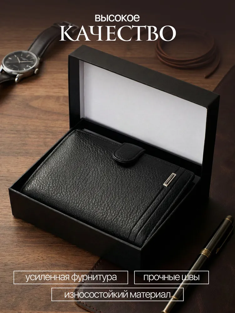 Alleanza Bags Мужской бумажник Alleanza Bags Элегантный кошелек выполнен из прочной экокожи с мягкой текстильной подкладкой, сочетающей долговечность и комфорт. Компактный формат идеально вмещает все необходимое: три отделения для карт, места для паспорта, водительских прав, купюр и даже фото. Функциональная организация и минималистичный черный меланжевый дизайн подойдут как для повседневного использования, так и для официальных мероприятий. Прочный корпус и продуманные детали обеспечивают надежную защиту документов. Каждая единица поставляется в стильной подарочной коробке, готовой к преподнесению в качестве подарка или хранению аксессуара. Простота конструкции и универсальность делают его незаменимым спутником в деловой жизни.