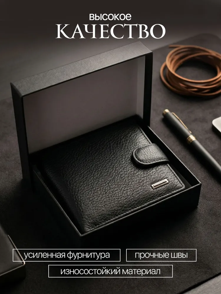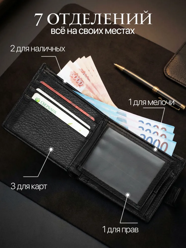 Alleanza Bags Мужской бумажник Alleanza Bags – стильное решение для повседневности! Лаконичный кошелек выполнен из прочной экокожи чёрного цвета, идеально сочетающейся со всеми образами. Компактный формат обеспечивает удобство транспортировки, а внутри предусмотрено трёхъярусное размещение: отдельные секции для банкнот, карт и монет. Внутренняя текстильная подкладка добавляет эстетики и бережно сохраняет содержимое. Изделие дополнено презентабельной подарочной коробкой, готовой стать отличным выбором для любого случая. Прочный, функциональный и всегда актуальный – этот аксессуар станет надёжным помощником в вашем деле.