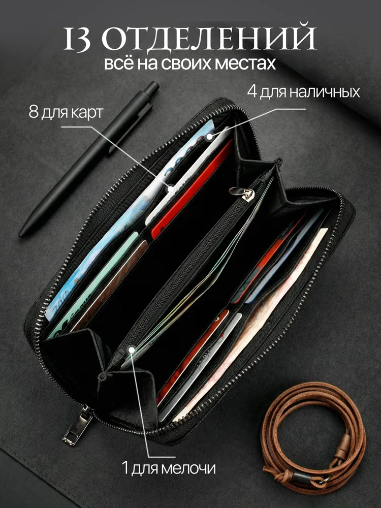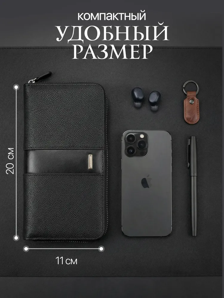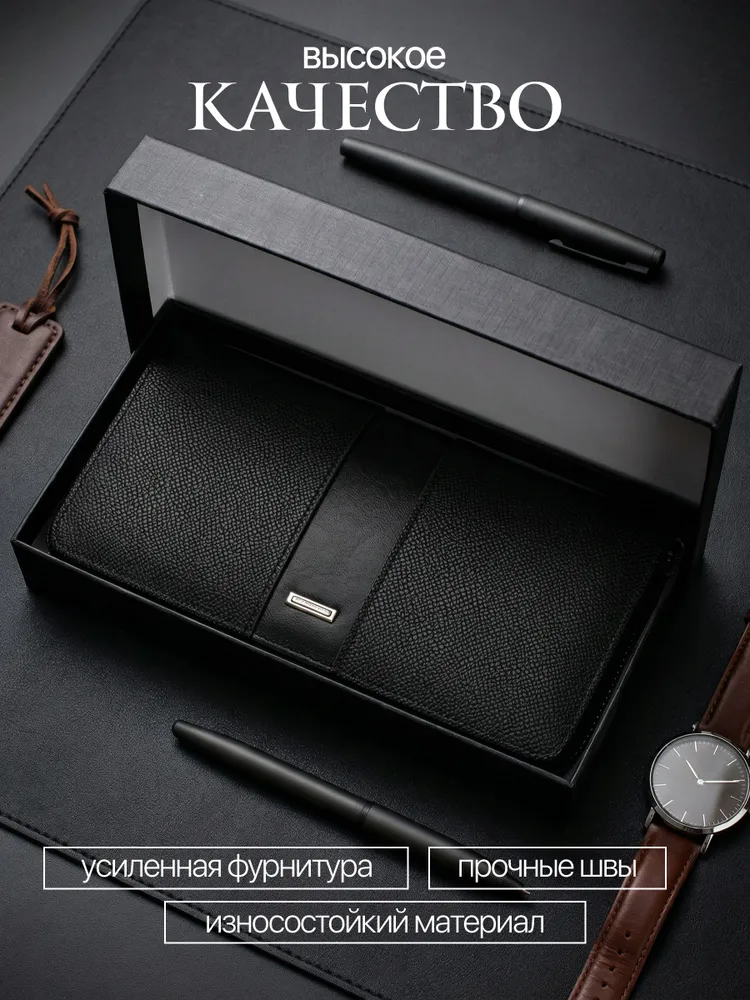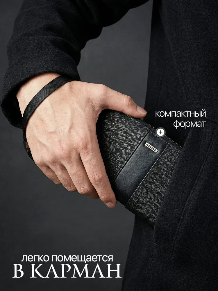Alleanza Bags Мужской кошелек-портмоне Alleanza Bags Стильный и функциональный аксессуар для современного человека — идеальное сочетание элегантности и практичности. Изготовлен из прочной экокожи глубокого черного оттенка с мягкой текстильной подкладкой, обеспечивающей комфорт при использовании. Кошелек оснащен двумя отделениями для купюр, восемью слотами для карт, специальным карманом для водительских прав и отделением для монет. Компактные размеры позволяют удобно разместить его в брючном кармане или сумке. Простая базовая форма дополнена подарочной коробкой, которая станет отличным решением для презента. Лаконичный дизайн подходит к любому образу, а качественные материалы гарантируют долговечность. Выбирайте надежность и стиль — Alleanza Bags предлагает всё необходимое в одном аксессуаре.