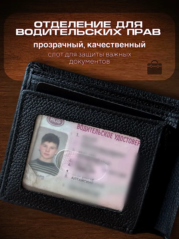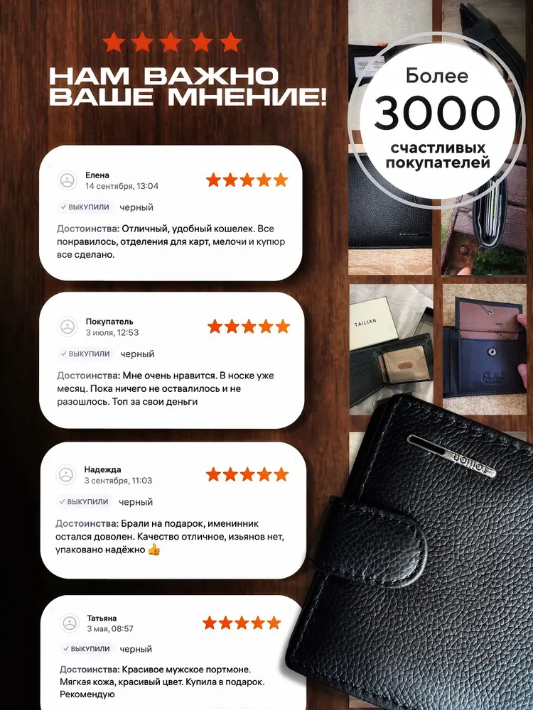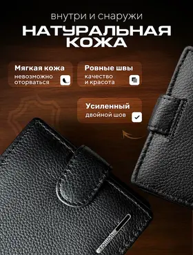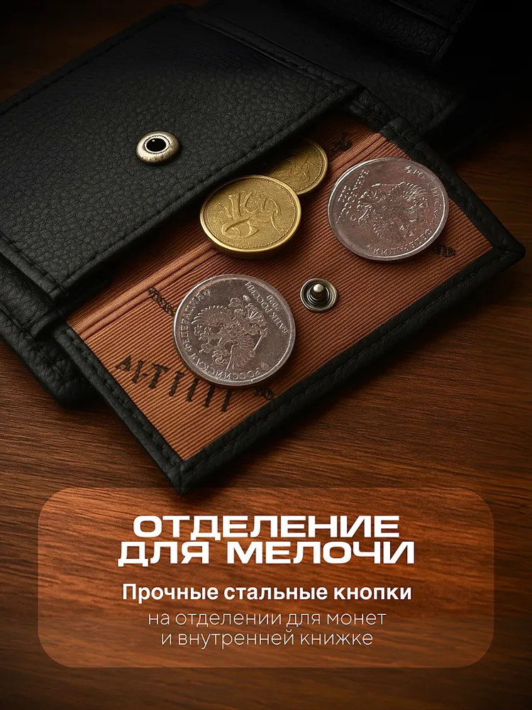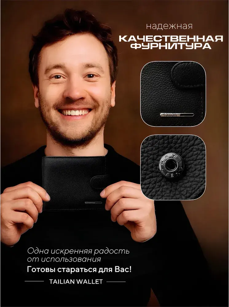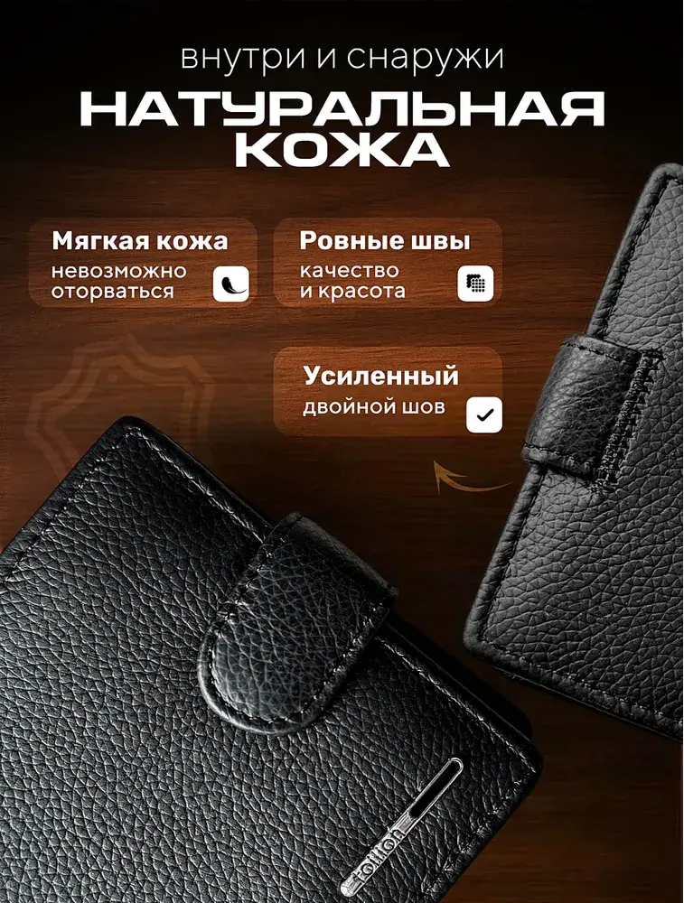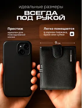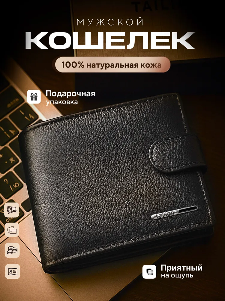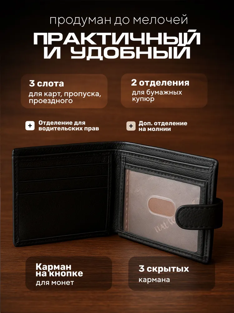 Кошелек мужской черный из натуральной кожи, бумажник