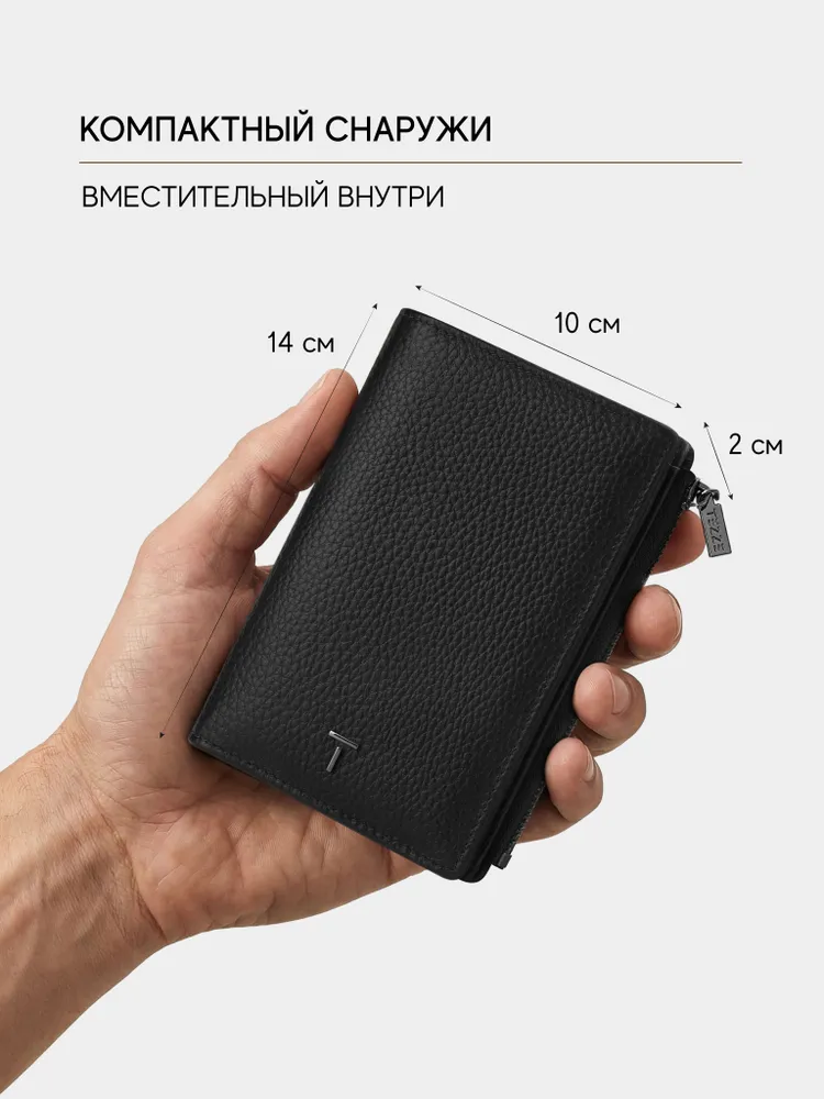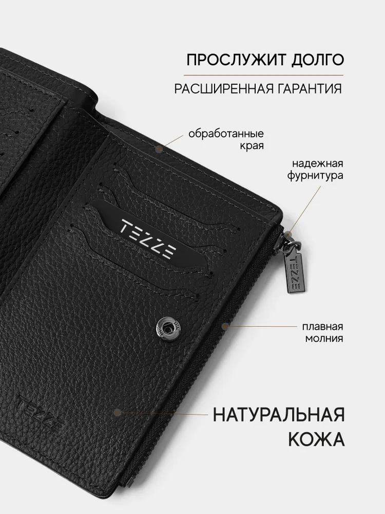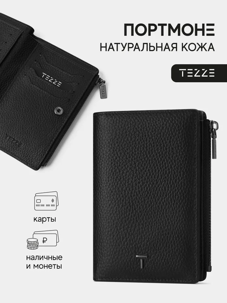 Черный мужской классический кошелёк на молнии от TEZZE — вместительный формат, максимум порядка. Классический компактный кошелёк в чёрном цвете, который вмещает паспорт и документы на автомобиль, наличныие. Изготовлен из натуральной кожи — приятной на ощупь, немаркой и легко поддающейся уходу. Высокая износостойкость и гарантия производителя обеспечивают долгие годы безупречной службы. Ключевые преимущества: Формат, вмещающий паспорт и документы на автомобиль, наличные — всё под рукой. При большом внутреннем объёме остаётся компактным — не утяжеляет карман. Закрытие на молнию — надёжная фиксация содержимого. Минимализм в логотипе и декоративных строчах — подходит к любому стилю. Гарантия качества и высокая износостойкость — хранит аккуратный вид долгие годы. Лёгкий уход — достаточно протереть влажной мягкой тканью.