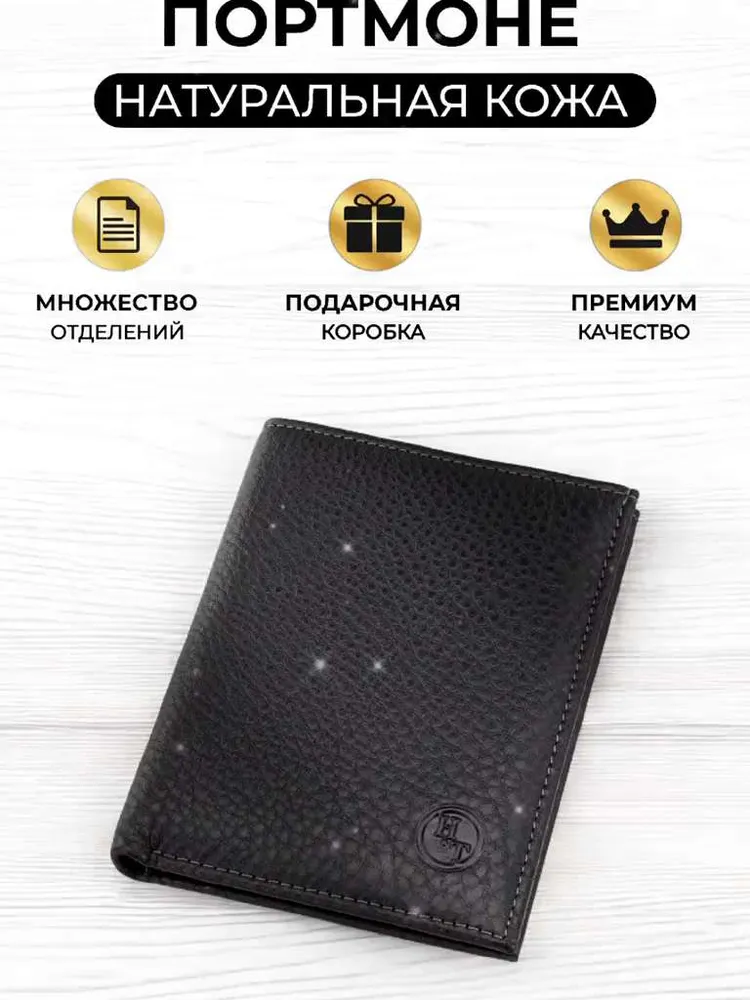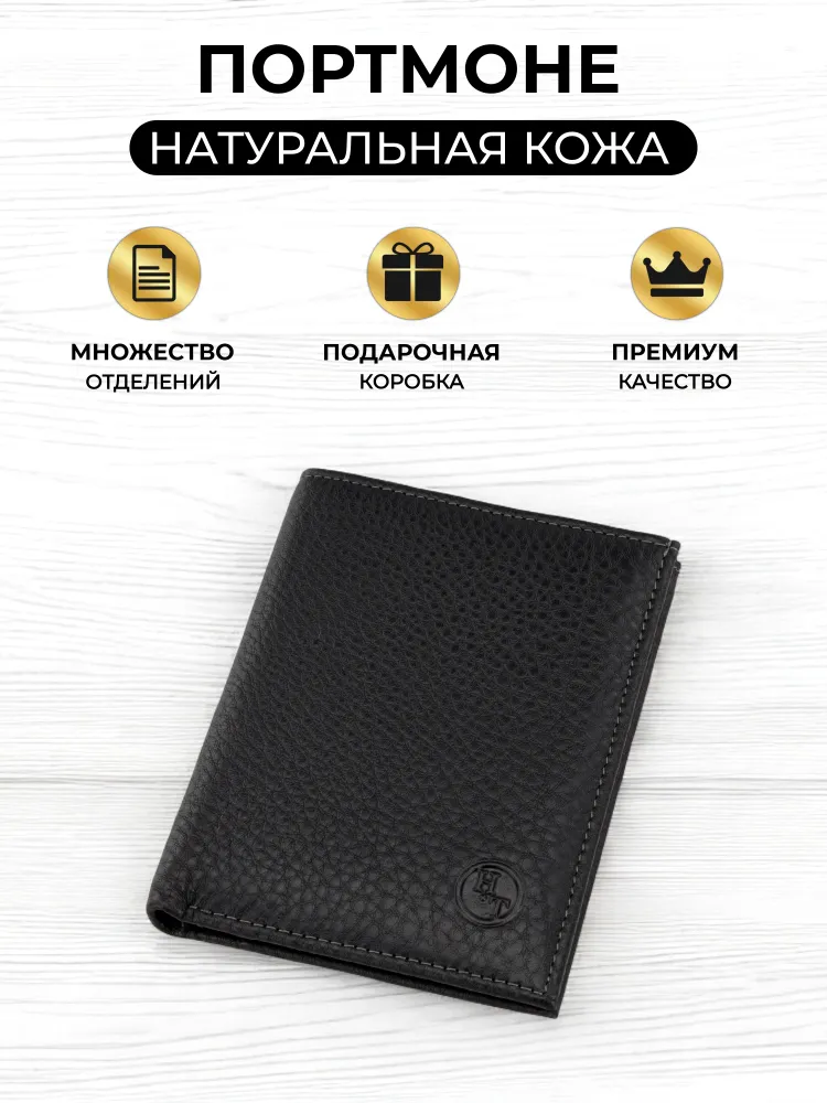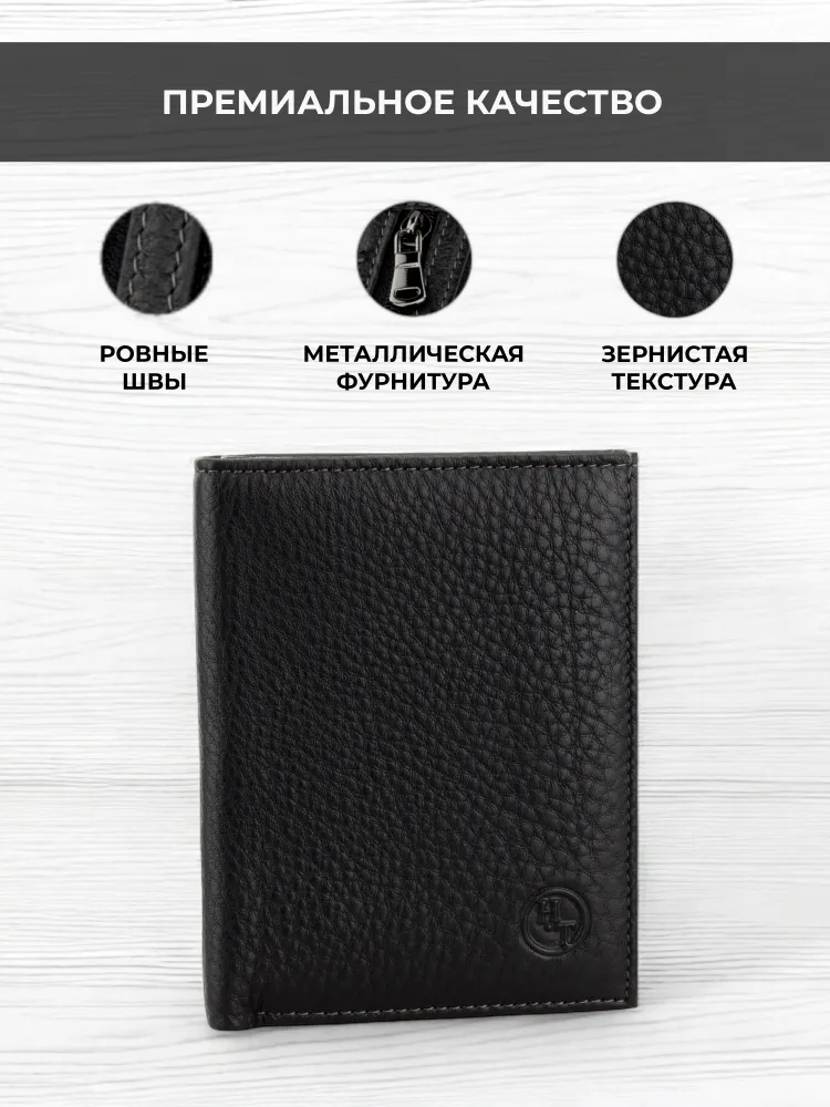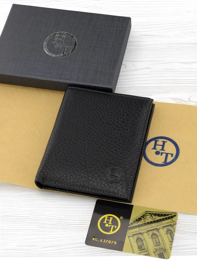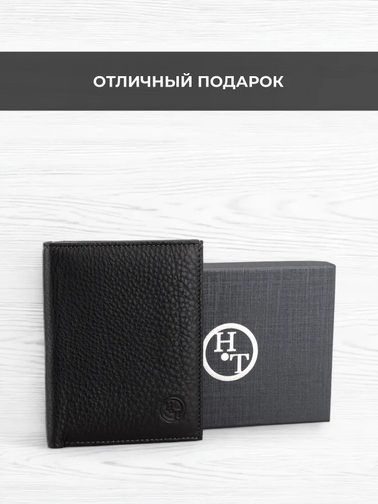 Кошелек мужской HT натуральная кожа черный