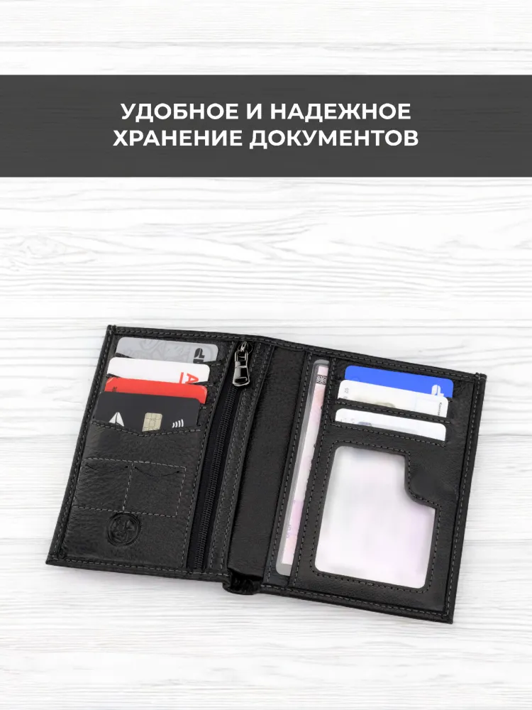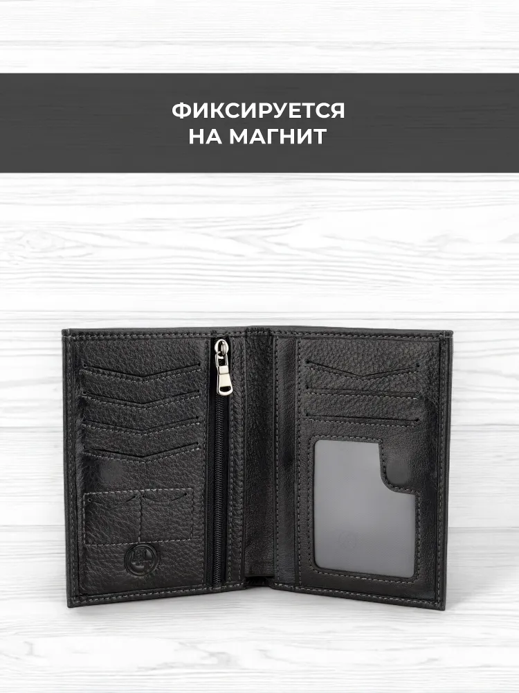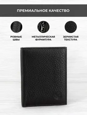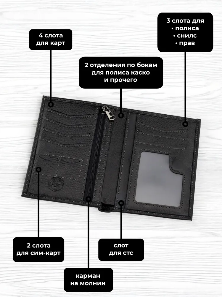Мужской кошелек из натуральной кожи - это стильный и практичный аксессуар, который поможет организовать хранение ваших карточек, денег и документов. Этот маленький кожаный кошелек идеально подходит для тех, кто предпочитает компактные аксессуары. Он легко помещается в сумку и даже в карман. Внутри вы найдете отделения для карт и документов, карман для мелочи, а также отдельное место для хранения наличных. Мини портмоне из натуральной кожи также может использоваться как портмоне для автодокументов и бумажник для купюр. Портмоне мужское из натуральной кожи - это элегантный и удобный аксессуар, который станет незаменимым спутником в повседневной жизни. Премиальное качество всего изделия. Нейлоновая внутренняя отделка, надежная застежка и качественная прострочка. Поставляется в подарочной коробке. Отделения: 1 карман на молнии 1 отделение для водительских прав 1 отделение для СНИЛС 1 отделение для полиса 1 отделение для СТС 2 отделения для купюр 4 слота для карт 2 слота для сим-карт 2 скрытых кармана по бокам Размер изделия: Высота 13 см Ширина 10 см