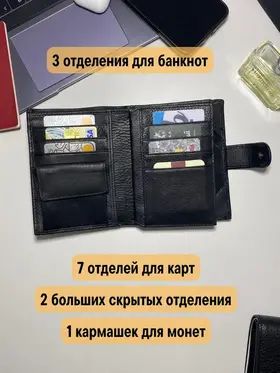 Классической мужской кошелек портмоне выполнен из 100% натуральной кожи. Компактный, но очень вместительный кожаный кошелек - идеальный аксессуар для каждого мужчины, а также отличный подарок!
