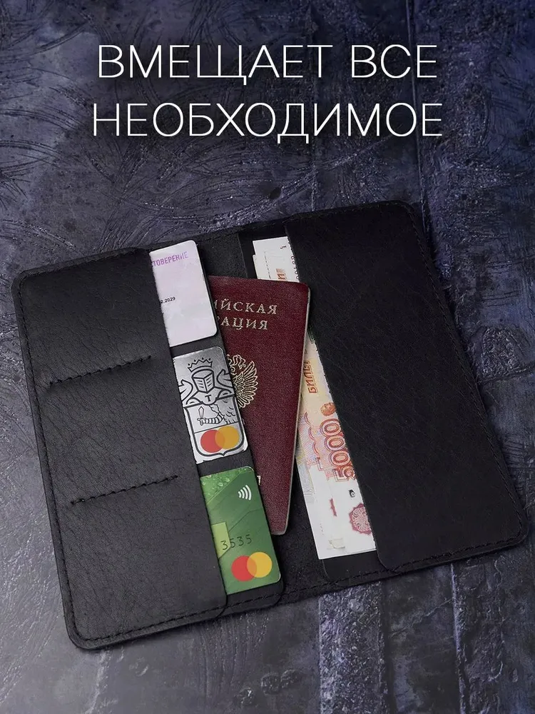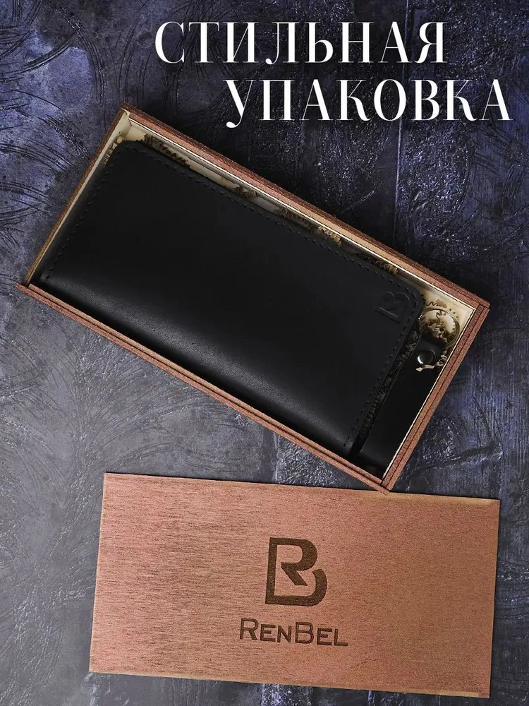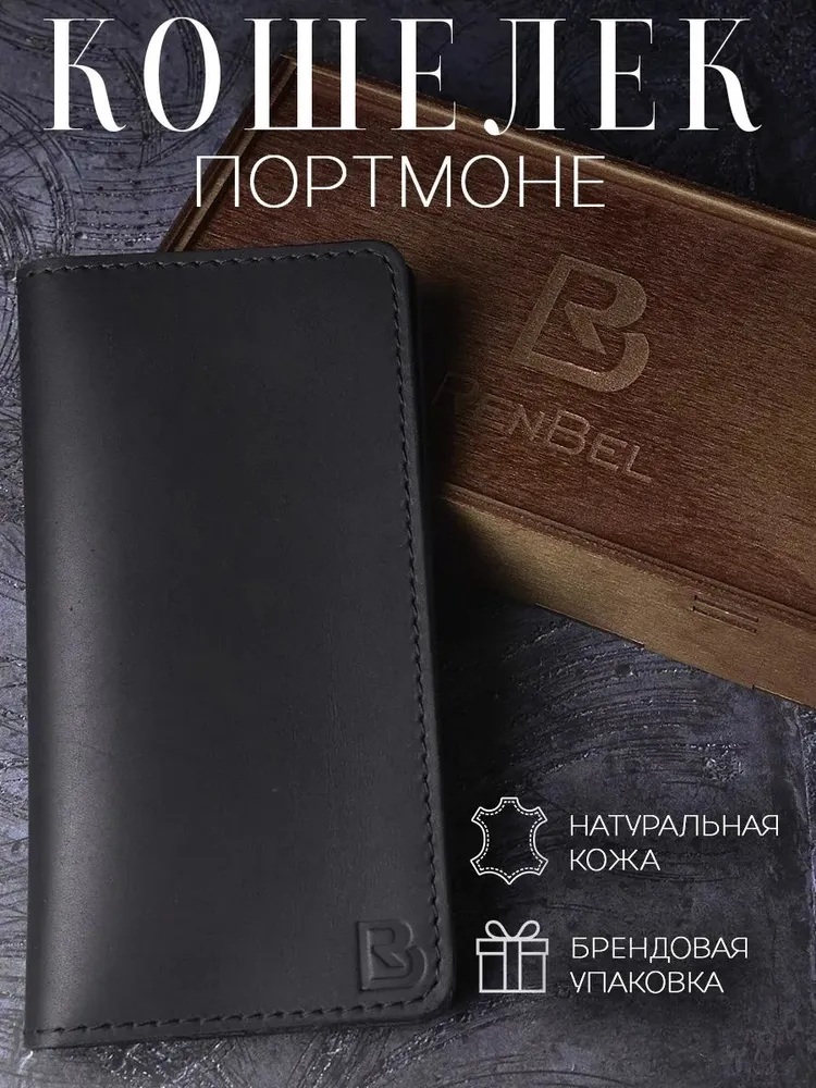 Кошелек мужской из натуральной кожи черный большой
