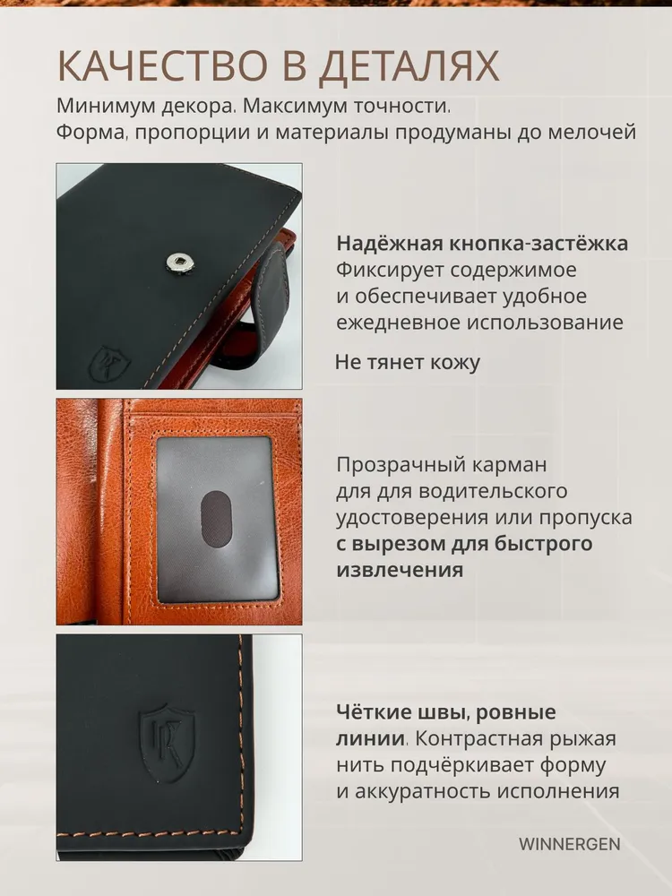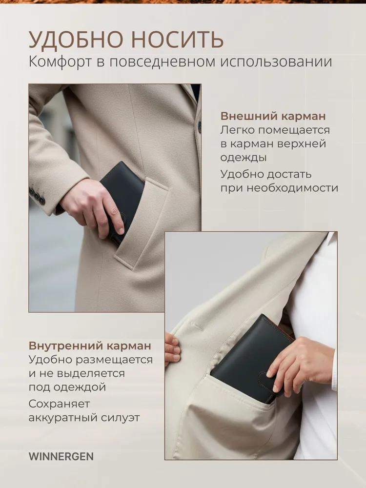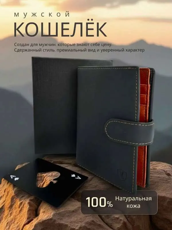 Поиск идеального кошелька становится актуальным для многих мужчин, которые ценят стиль и функциональность. Мужской кожаный портмоне для денег и карт — это именно тот аксессуар, который решит ваши проблемы с организацией личных вещей. Это не просто документница, а настоящий подарок для водителей и любителей путешествий. Натуральная кожа обеспечивает долговечность и привлекательный внешний вид. Черный цвет делает его универсальным, что позволяет использовать его в любой ситуации. В этом компактном и вместительном аксессуаре вы сможете разместить паспорт, автодокументы, права, визитки. Также имеется отдел для крупных купюр и мелких монет. Практичный картхолдер благодаря технологии RFID blocking wallet (РФИД покрытие для защиты данных банковских карт) защитит ваши банковские карты могут подвергнуться кибератакам и их данные могут быть украдены. Благодаря тонкой и складной конструкции документница легко помещается даже в маленькие карманы. Бумажник в подарочной упаковке является отличным вариантом презента для любимого мужа или друга. Так вы сможете порадовать его не только функциональным предметом, но и стильной составляющей, которая подчеркнет его индивидуальность. Брендовый дизайн визитницы добавляет дополнительный уровень качества и статуса. Подарите это сочетание практичности для повседневного использования и статусного элемента образа. Этот мужской аксессуар визитница для банковских карт в готовой подарочной упаковке станет шикарным подарком вашему мужчине на день рождения или юбилей. Модный тренд весна 2026 как из Pinterest (Пинтерест) для настоящих мужчин! Заголовок Пожалуйста, замените этот текст Вашим собственным. Просто кликните по тексту, чтобы добавить свой текст. Настройте стиль текста в левой колонке. Заголовок Пожалуйста, замените этот текст Вашим собственным. Просто кликните по тексту, чтобы добавить свой текст. Настройте стиль текста в левой колонке.