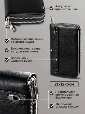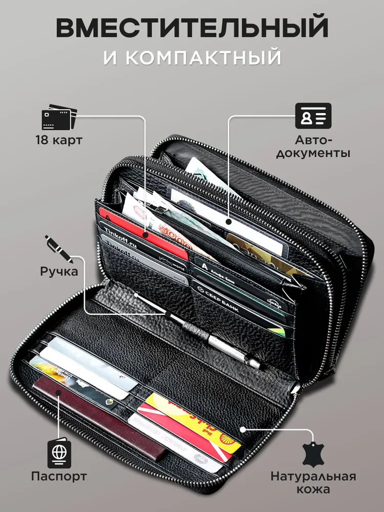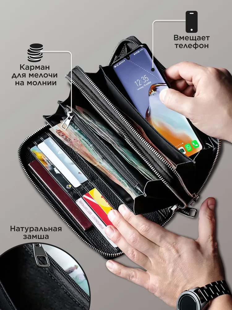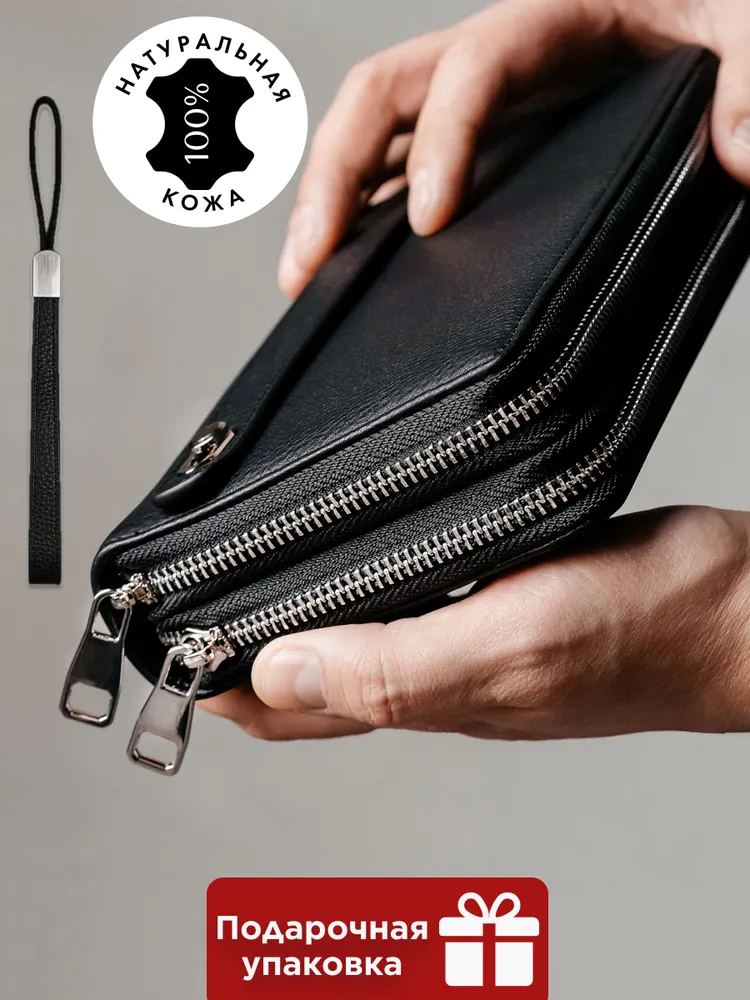 Кошелек мужской из натуральной кожи, клатч, портмоне