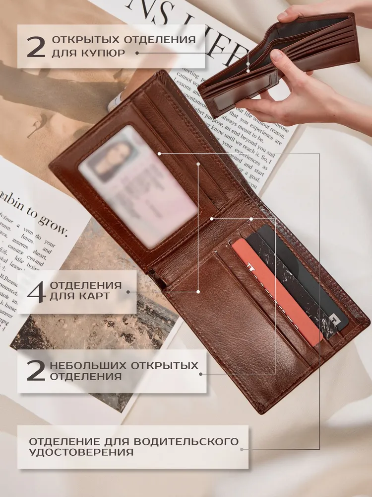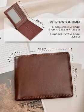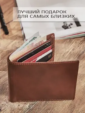 Стильный кошелек мужской кожаный без замка дополнит образ современного делового мужчины. Бумажник мужской из натуральной кожи имеет отделения для банковских карт, карман для купюр, а так же отделение для водительского удостоверения. Мини кошелек изготовлен из натуральной 100% кожи. Кошелек мужской маленький имеет качественный материал, устойчивый к перепадам температур и потере формы, что позволяет сохранить эстетичный вид на долгие годы. Кошелек для карт имеет компактный размер. Кошелек маленький 12х9,5х1,5 см. Кожаный кошелек мужской ультратонкий. Всего 1,5см. Поместится в карман Мужской кошелек из натуральной кожи выполнен в стильном глянцевом цвете. Мужской бумажник - это утонченный подарочный презент для вашего папы, брата, внука, мужчины, сына, подростка. Вы можете подарить бумажник мужской кожаный на День рождения др, 23 февраля, выпускной или другой праздник в качестве знака внимания и памятного подарка. Переходите в каталог магазина и познакомьтесь с коллекцией актуальных аксессуаров первыми!